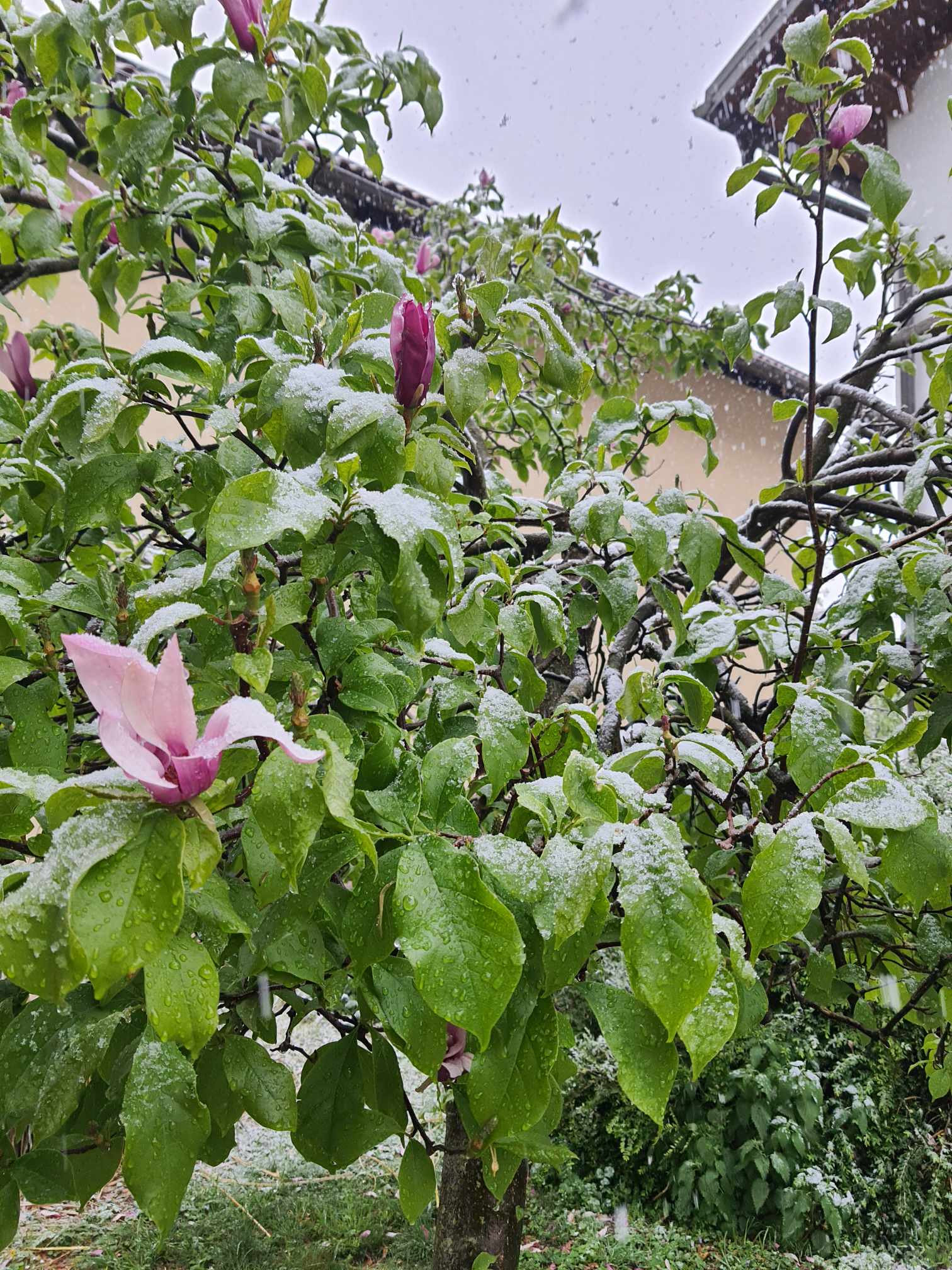 Sneg na cvetoči magnoliji (Foto: bralka) | Sneg na cvetoči magnoliji (Foto: bralka)