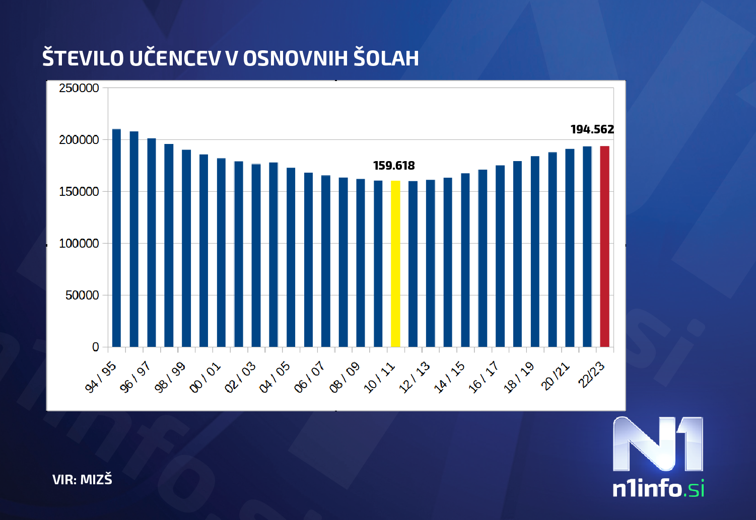 Število učiteljev, ki jih potrebuje naš šolski sistem, je odvisno predvsem od števila šolarjev. Medtem ko je bilo sredi 90. let v osnovnih šolah več kot 200 tisoč učencev (v šolskem letu 1994/95 skoraj 210 tisoč), so se nato generacije zmanjšale. Najmanj osnovnošolcev, manj kot 160 tisoč, je bilo v šolskem letu 2010/11, nato se je število znova začelo večati in trend še traja. Letos bo osnovne šole predvidoma obiskovalo 194.562 otrok in najstnikov.