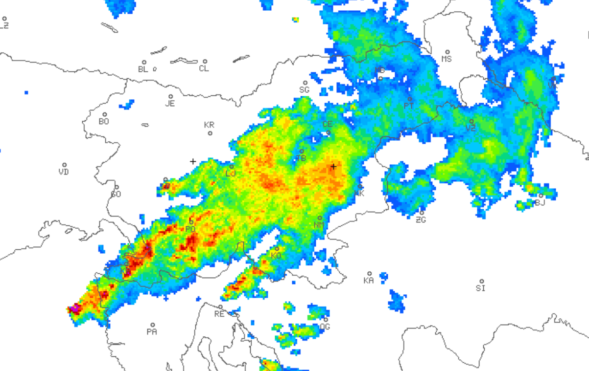 Spremljajte, kje nastajajo nevihte (morda boste morali počakati nekaj trenutkov, da se vam radarska slika padavin prikaže).