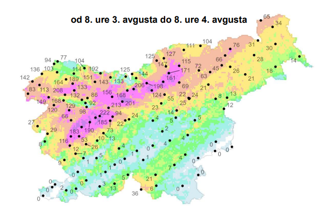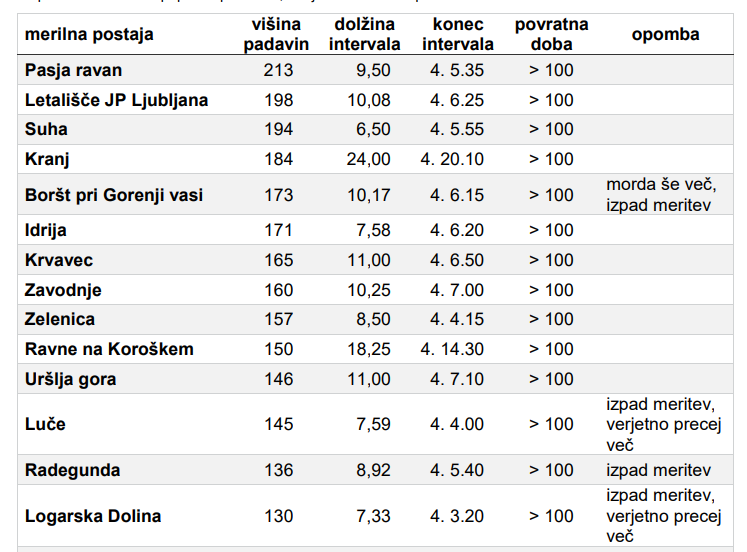 "V manj kot 10 urah je na območju Polhograjskega hribovja padlo več kot 200 milimetrov dežja. Več kot ga v povprečju pade v celem mesecu! Pas zelo močnih padavin je bil zaradi močnega jugozahodnika obsežen in je segel vse do Koroške, kjer ni padlo dosti manj, okoli 150 milimetrov," je nadaljeval Šter.