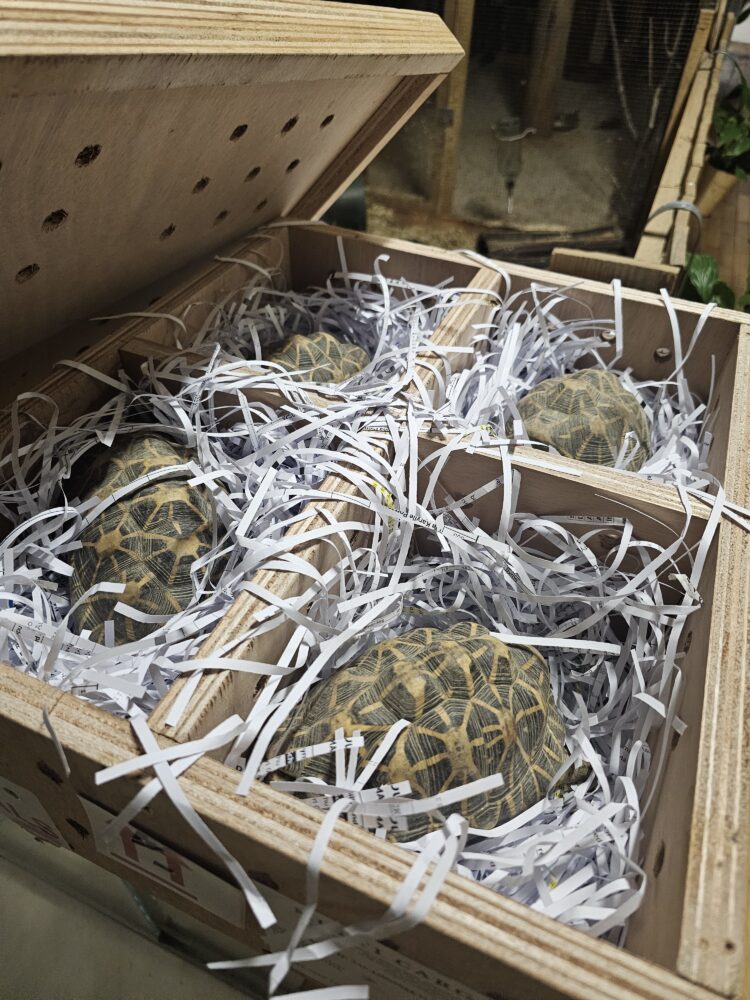 Prihod samcev indijskih zvezdastih kornjač. (Foto: Tropska hiša) | Prihod samcev indijskih zvezdastih kornjač. (Foto: Tropska hiša)
