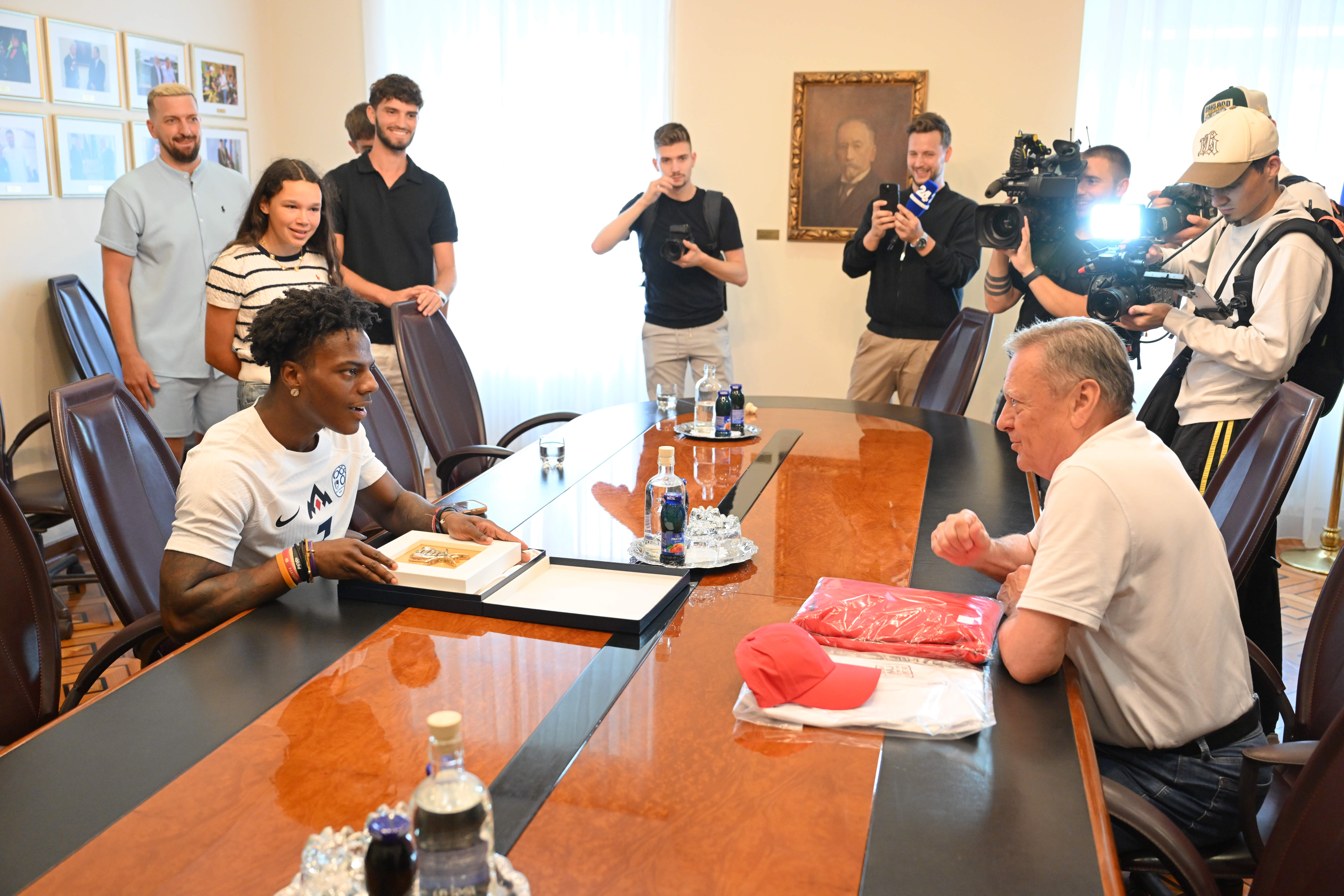 V Mestni hiši ga je sprejel ljubljanski župan Zoran Janković. Njegov obisk je spremljala množica navdušenih oboževalcev, ki so jih na varni razdalji obvladovali njegovi varnostniki. Zvezdnik je ob tem nosil dres slovenske nogometne reprezentance s številko 7, s čimer se je poklonil svojemu najljubšemu nogometašu Cristianu Ronaldu.