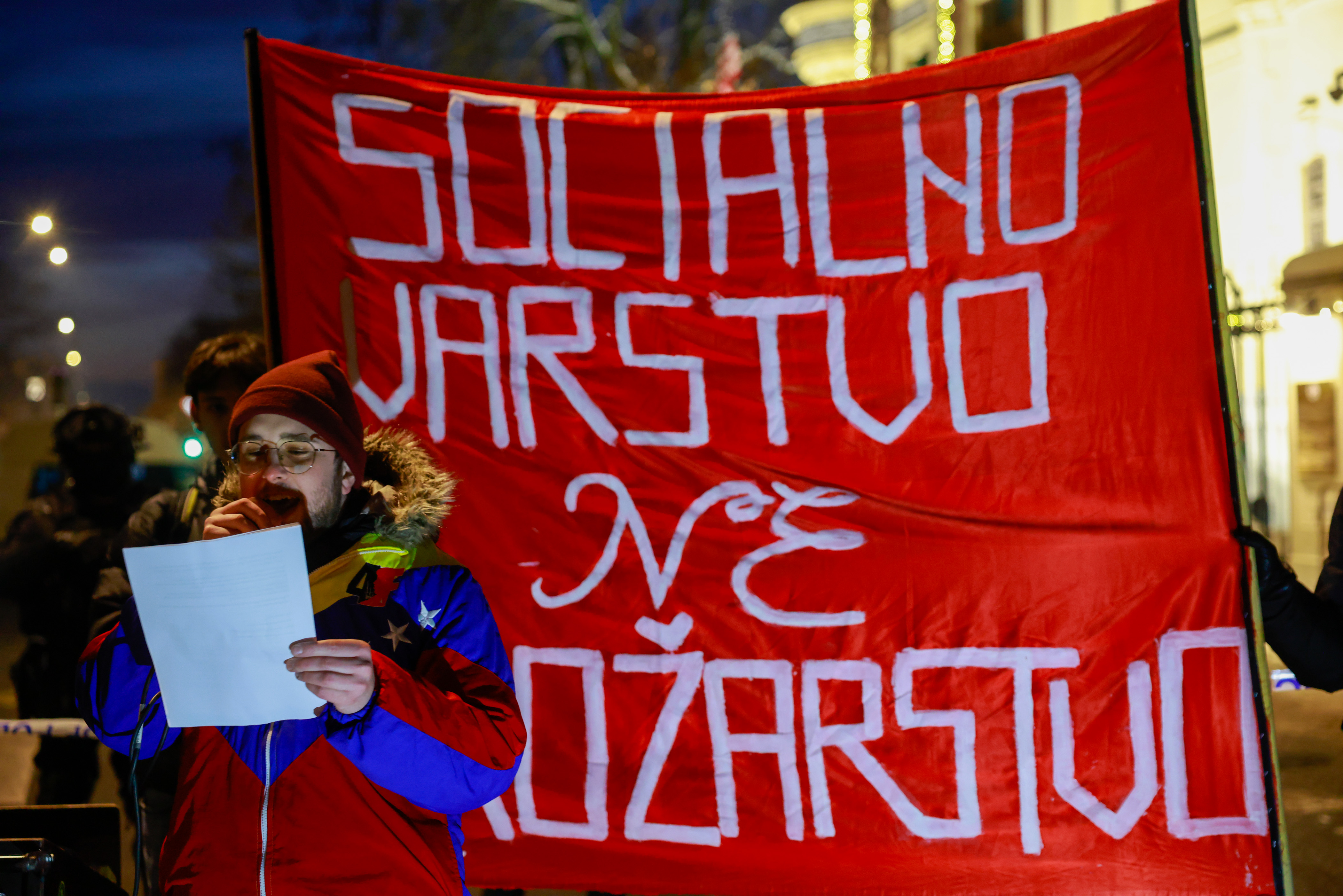Govorniki iz študentskega društva Iskra, ki je organiziralo današnji shod, so operacijo ZDA v Venezueli označili za še en učbeniški primer ameriškega imperialističnega delovanja na globalnem jugu. Trdili so, da so ZDA Venezuelo ilegalno bombardirale in predsednika Madura ugrabile zaradi nafte in njegovega projekta izgradnje socializma.