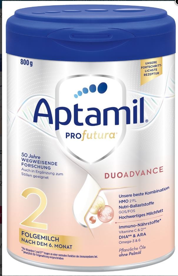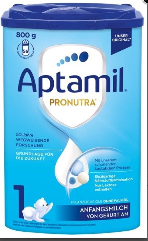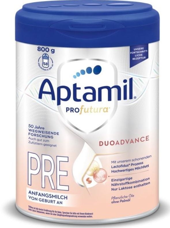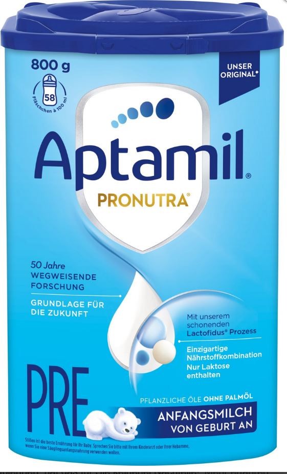 Serijska oznaka začetne formule za dojenčke Aptamil pronutra pre je 4056631001202, Aptamil pronutra advance pre 9001375006377, Aptamil pronutra 1 4056631001226, Aptamil pronutra 2 4056631001240, Aptamil pronutra 3 4056631001264, Aptamil profutura DuoAdvance pre 4056631003473 in Aptamil profutura DuoAdvance 2 4056631003473.