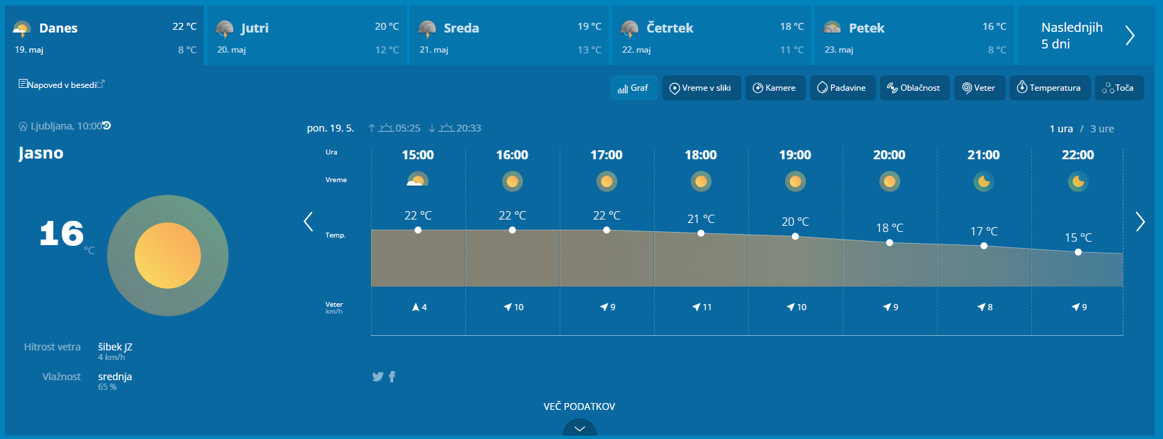 Se pa lahko bolj veselimo nedelje, saj bo nekoliko več sonca, dotekal bo toplejši zrak, zato se bo segrelo na približno 20 stopinj Celzija.