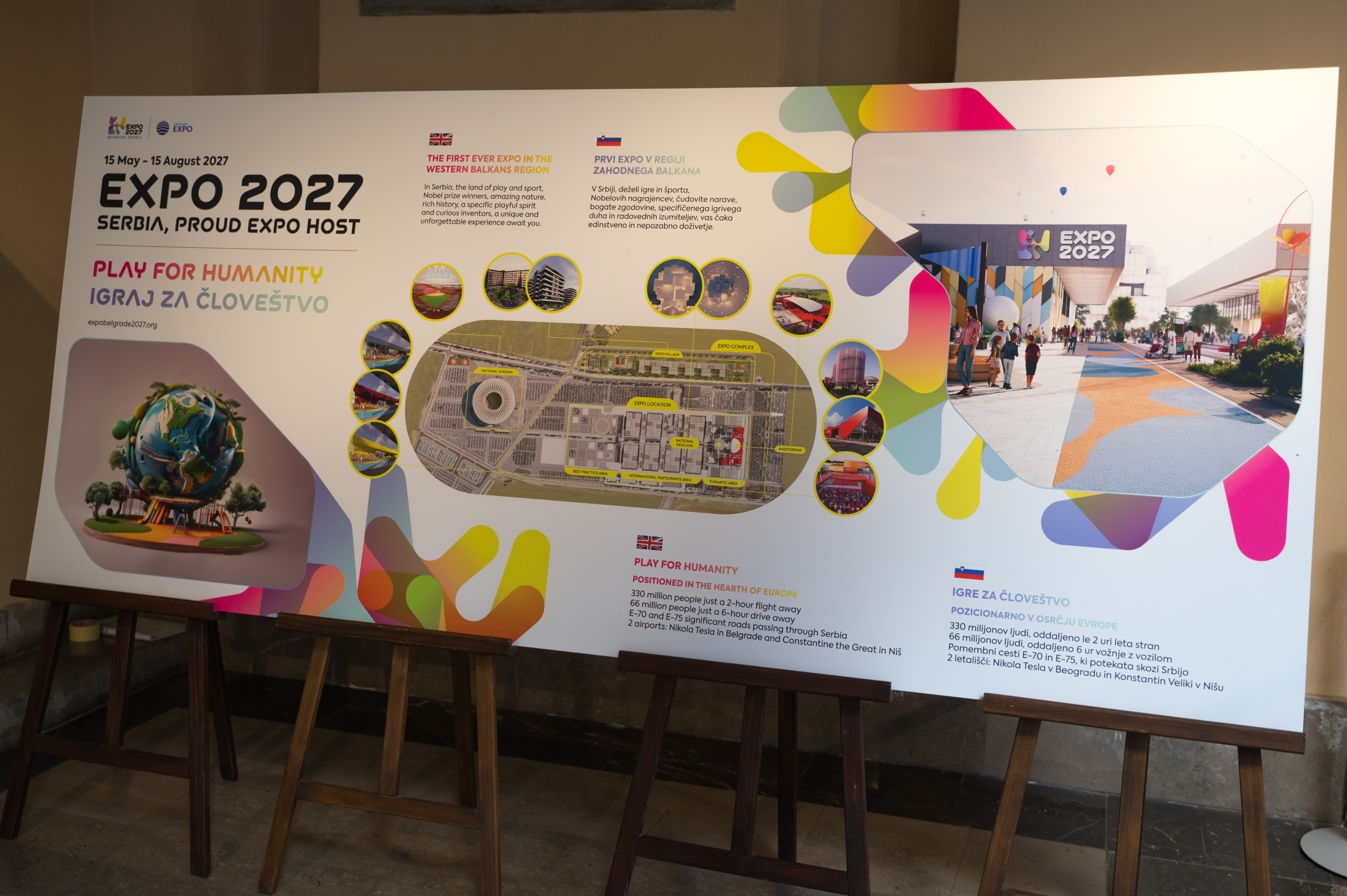 V organizaciji srbskega veleposlaništva v Sloveniji in podjetja EXPO, d. o. o., je v preddverju ljubljanske mestne občine razstavljena maketa za specializirano razstavo Expo 2027, ki bo potekala v Beogradu.