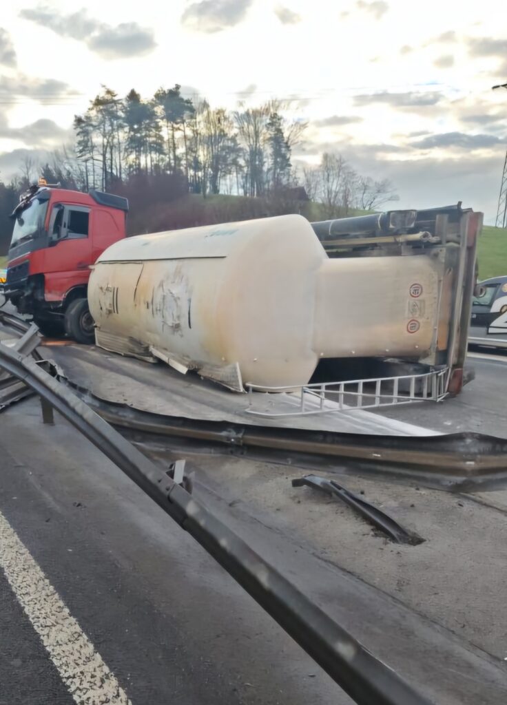 Prevrnil se je tovornjak in poškodoval približno 200 metrov jeklene varnostne ograje v obeh smereh. Čeprav so pristojni prvotno napovedali, da bo promet v smeri Maribora stekel do 12. ure, se je vse skupaj zavleklo.