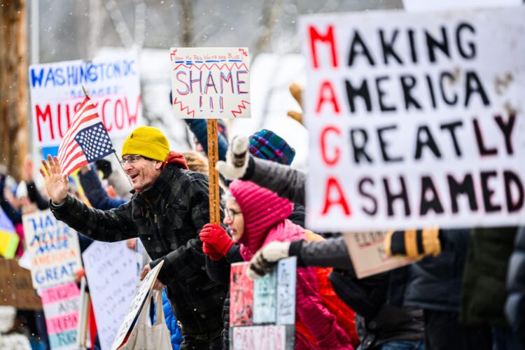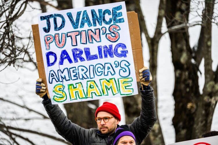 Po razgretem petkovem srečanju v Beli hiši si je ameriški podpredsednik J. D. Vance z družino nameraval privoščiti smučarski oddih v zvezni državi Vermont, a ga je na poti v letovišče Sugarbush na cestah Waitsfielda pričakala množica protestnikov. Številni od njih so držali transparente z napisi v podporo Ukrajini, nekateri so mahali s palestinskimi zastavami, drugi z napisi v podporo pravicam priseljencev, poroča tiskovna agencija AP.