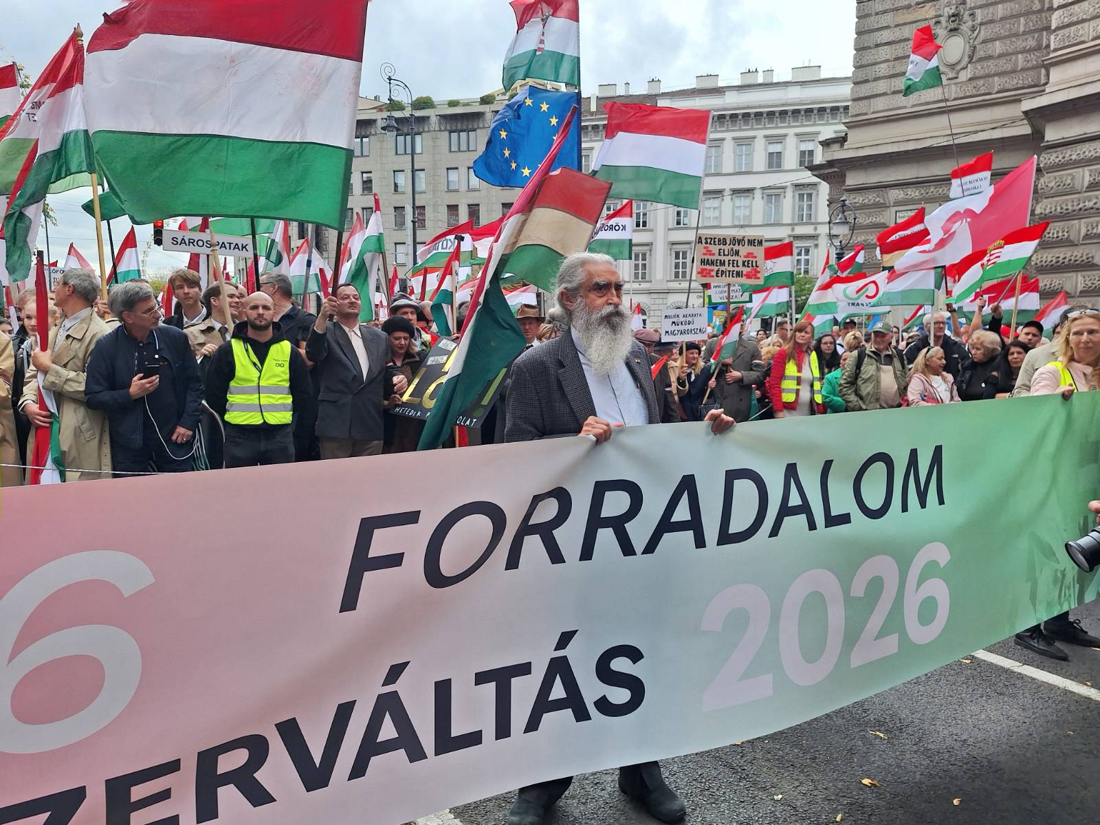Udeleženci shoda so vzklikali, da bo Tisza preplavila državo. Na ulicah so nosili transparente, med drugim tudi z napisom: "1956 revolucija, 2026 sprememba sistema". Danes, 23. oktobra, Madžari namreč praznujejo državni praznik, dan spomina na leto 1956, ko so se uprli sovjetski nadvladi.