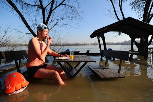 Po večdnevnih padavinah so se sicer danes prebivalci Budimpešte v soncu sprehajali ob še vedno narasli reki in opazovali valove, ki so pljuskali po nabrežju pod stavbo parlamenta. "Spominjam se velikih poplav, a nikoli decembra. Decembra je Donava običajno zmrznila. Spomnim se časa, ko sem bil zelo mlad in ko so morali z dinamitom razbijati led okoli Verižnega mostu," je dejal eden od mimoidočih.