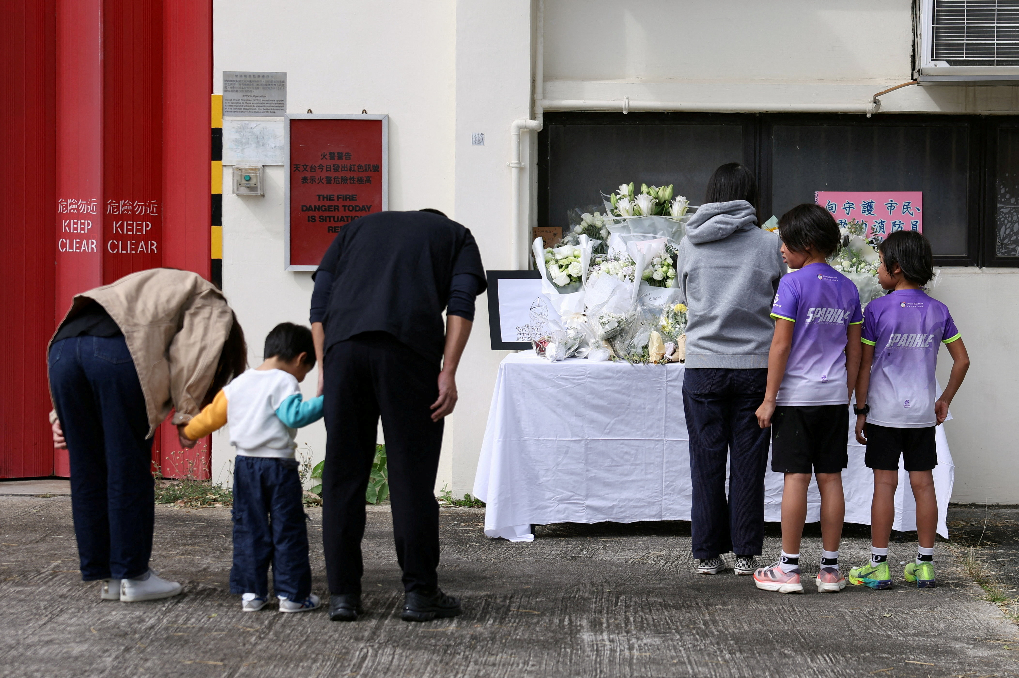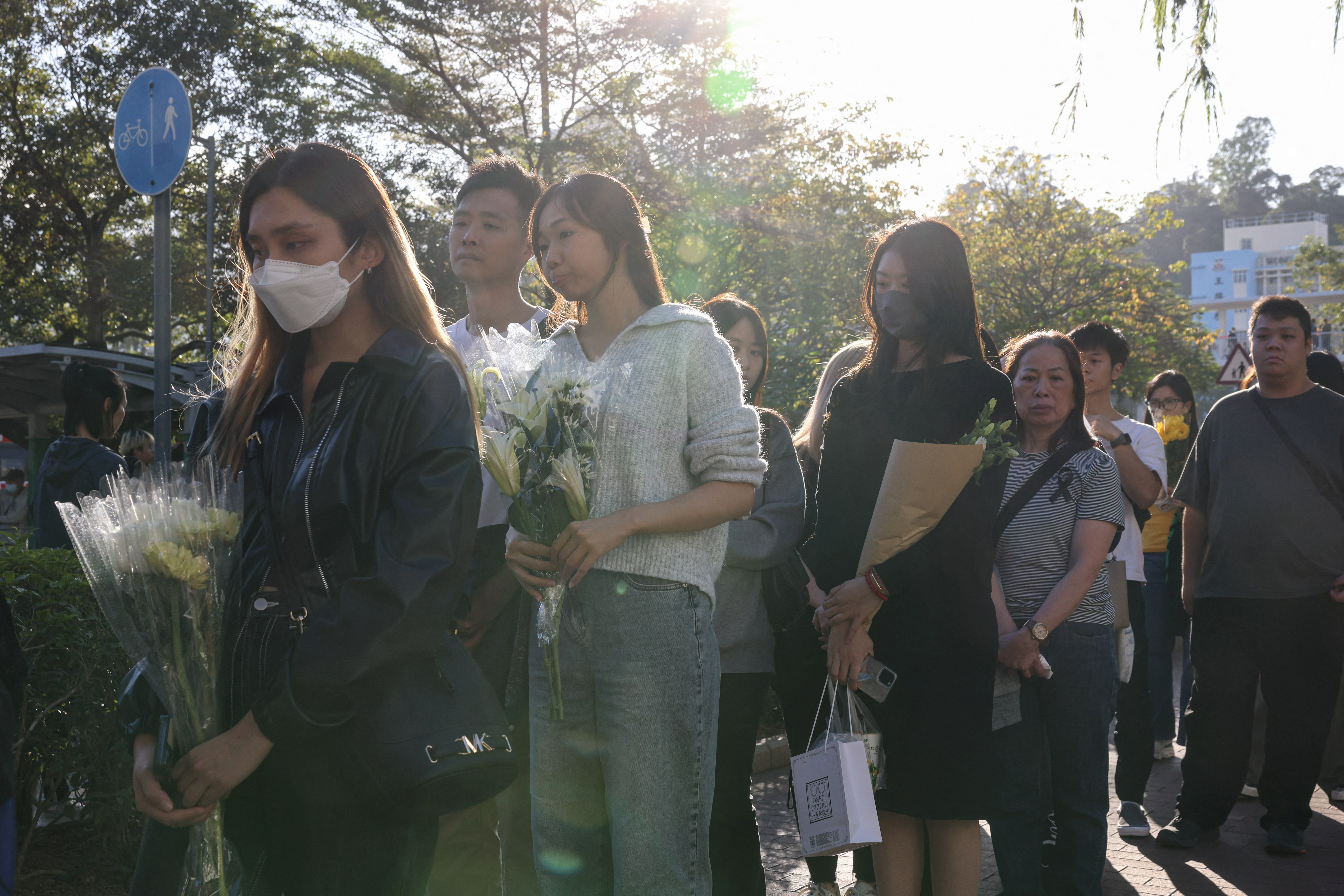 Predstavniki hongkonških oblasti so v spomin na žrtve v tišini stali tri minute pred sedežem vlade. Ljudje so medtem v parku blizu zoglenelega kompleksa, ki je gorel več kot 40 ur, polagali cvetje in spominske zapise.