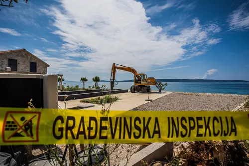 Akcija rušenja nezakonito zgrajenih objektov v Dalmaciji se nadaljuje. Bagri hrvaškega državnega inšpektorata so zjutraj začeli odstranjevati nezakonito zgrajene objekte na otoku Čiovo. Prvi od treh objektov na Čiovu, ki jih bodo predvidoma odstranili, je hiša v lasti švedskega državljana.
