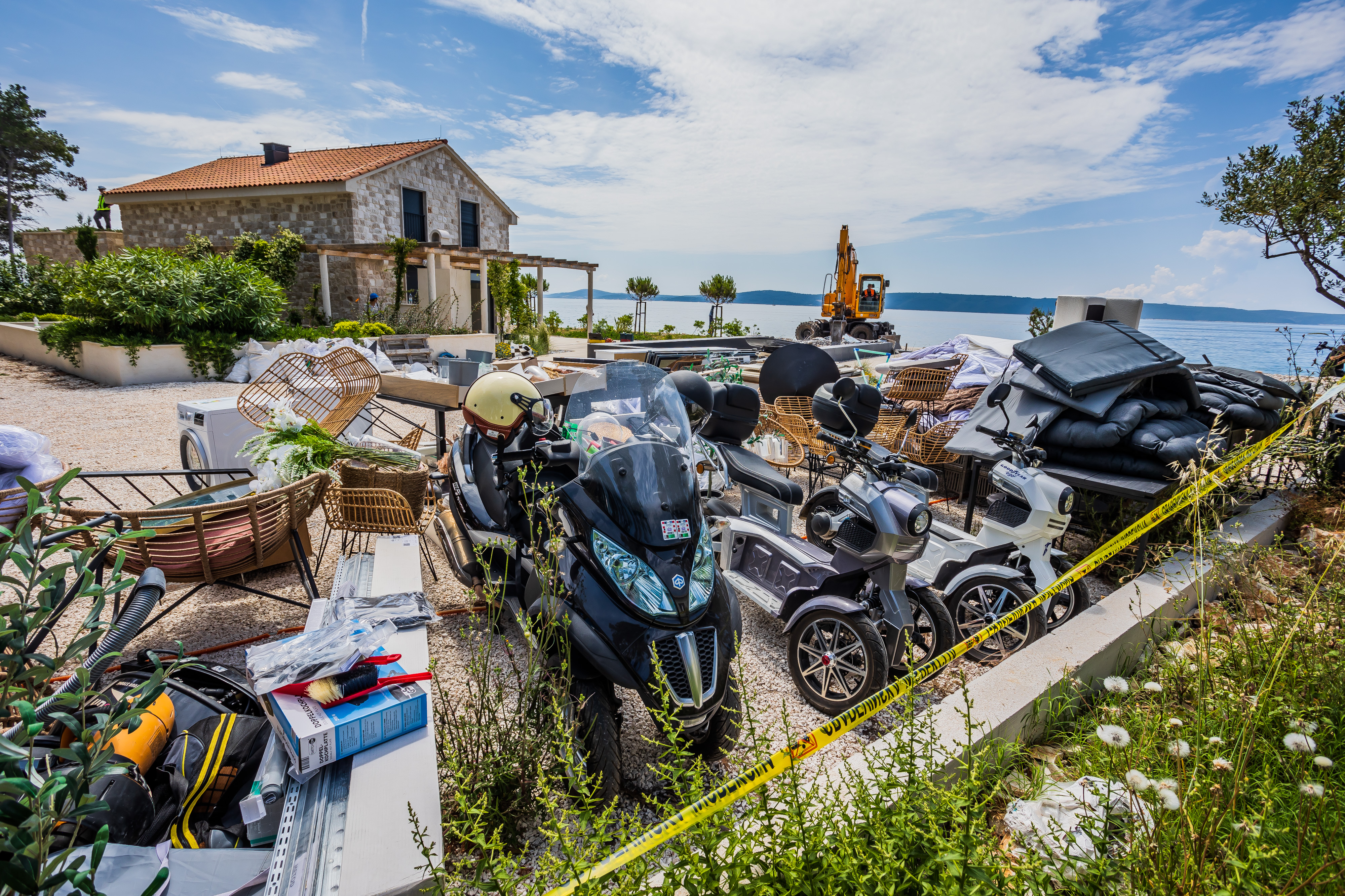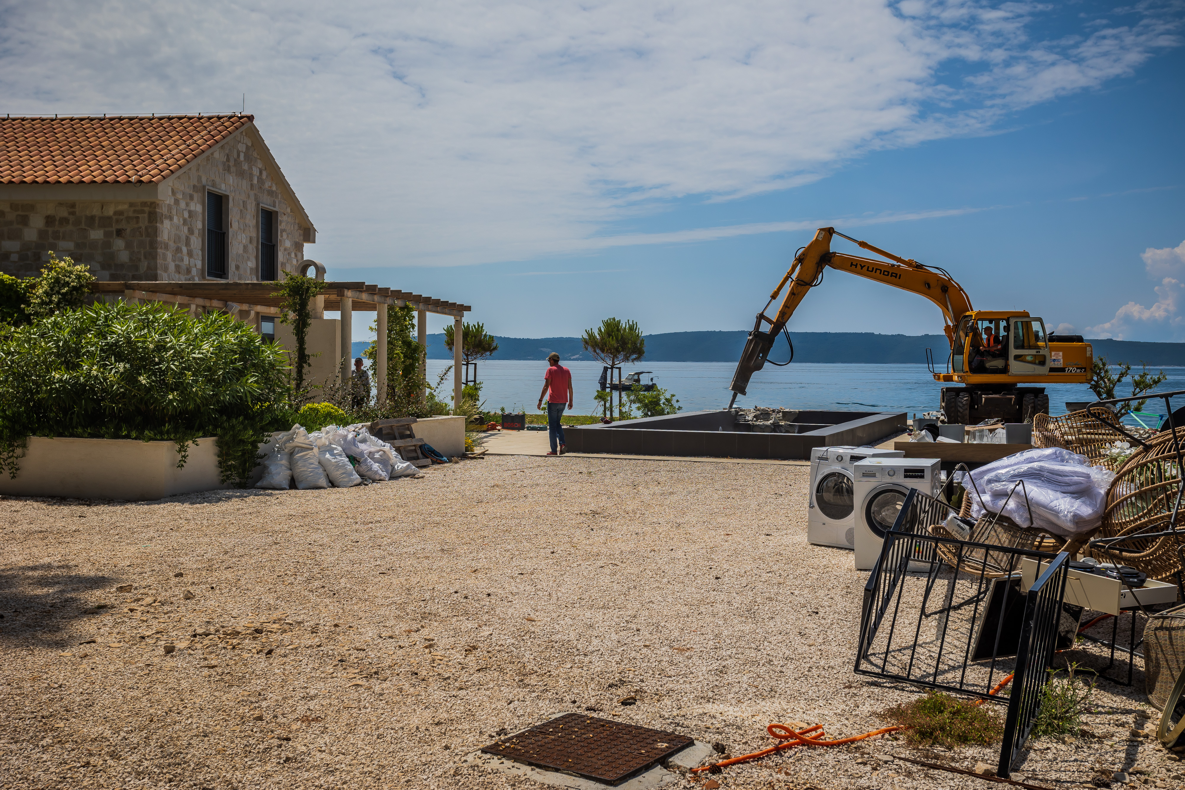 Na Hrvaškem se nadaljuje odstranjevanje nezakonito zgrajenih objektov na območju Splita, Omiša ter otokov Hvar in Brač. Na otoku Čiovo so večjo hišo že porušili, jutri rušenje nadaljujejo v zalivu Vruja.