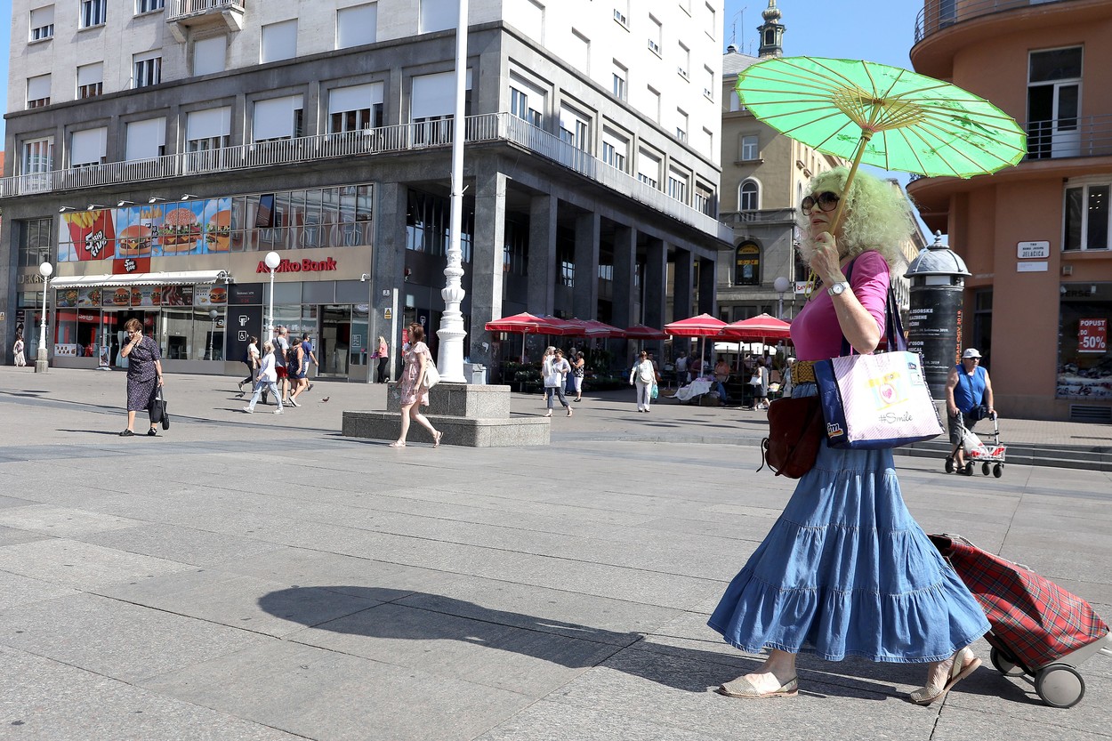 Številni preživljajo dopust na Hrvaškem, kjer temperature naraščajo iz ure v uro. Kljub neusmiljeni vročini in priporočilu tamkajšnje stroke, da se prebivalci aktivnostim na prostem izognejo med 10. in 17. uro, je na glavnem trgu v Zagrebu danes živahno.