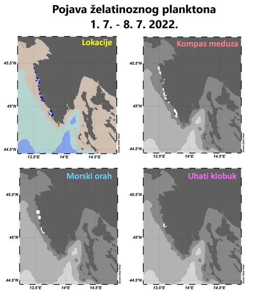 Center za raziskovanje morja v Rovinju Inštitut Ruđer Bošković (IRB) je objavil zemljevid, kje v Jadranu je največ meduz. Oblikovali so ga na podlagi prijav opažanj in prijav prebivalcev, ki so sporočili, kje so opazili posamezne vrste klobučnjakov.