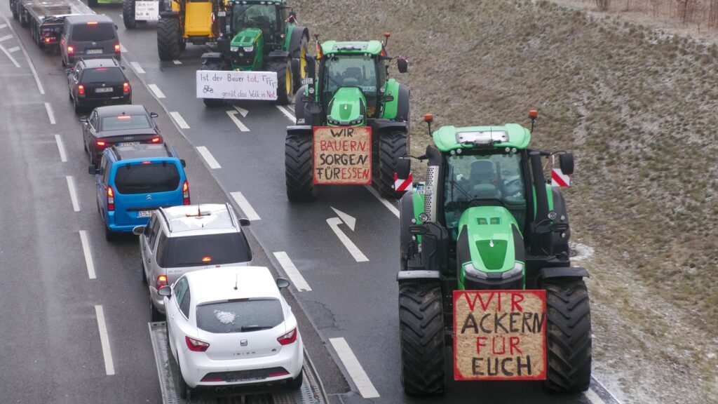 Nemški kmetje protestirajo že teden dni. S traktorji povzročajo blokade uvozov in izvozov na avtoceste, s svojimi vozili pa povzročajo prometne zastoje tudi v Berlinu in drugih mestih po državi. Osrednja protestna akcija kmetov je za ponedeljek napovedana v Berlinu, udeležilo pa naj bi se je na tisoče kmetov.