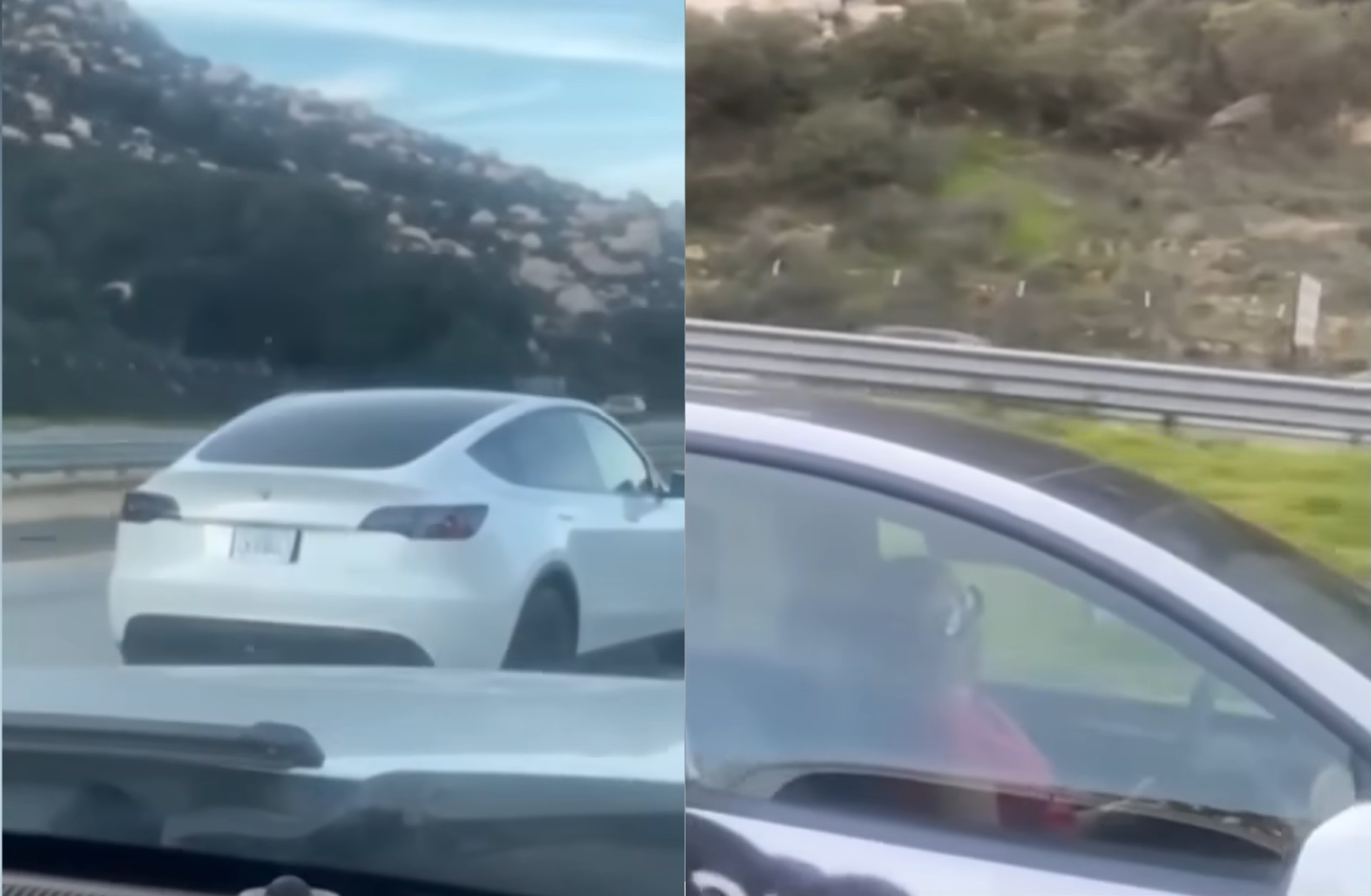 Med vožnjo po avtocesti v Južni Kaliforniji v ZDA je voznica tesle spala za volanom. Dogajanje je posnel drug voznik.