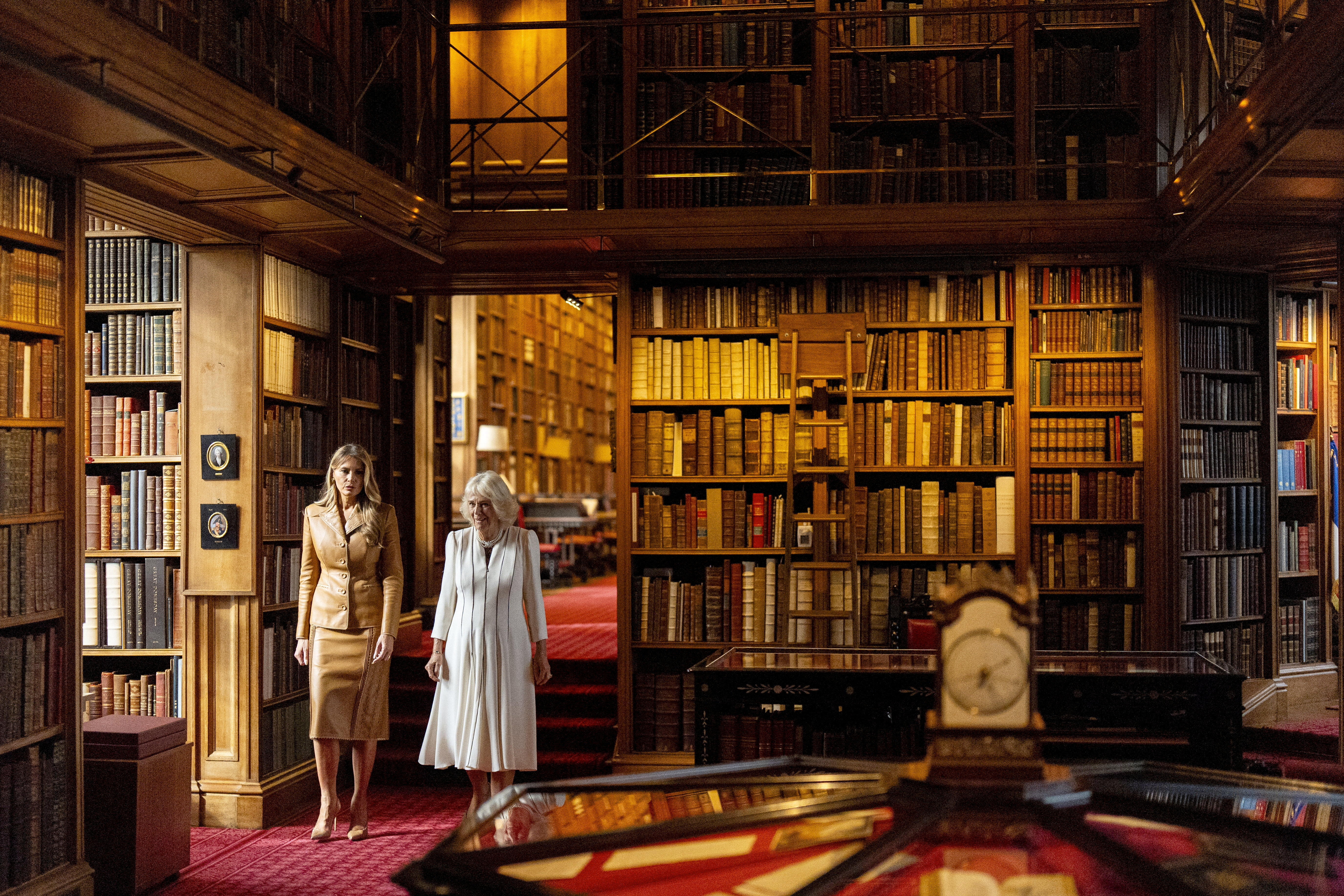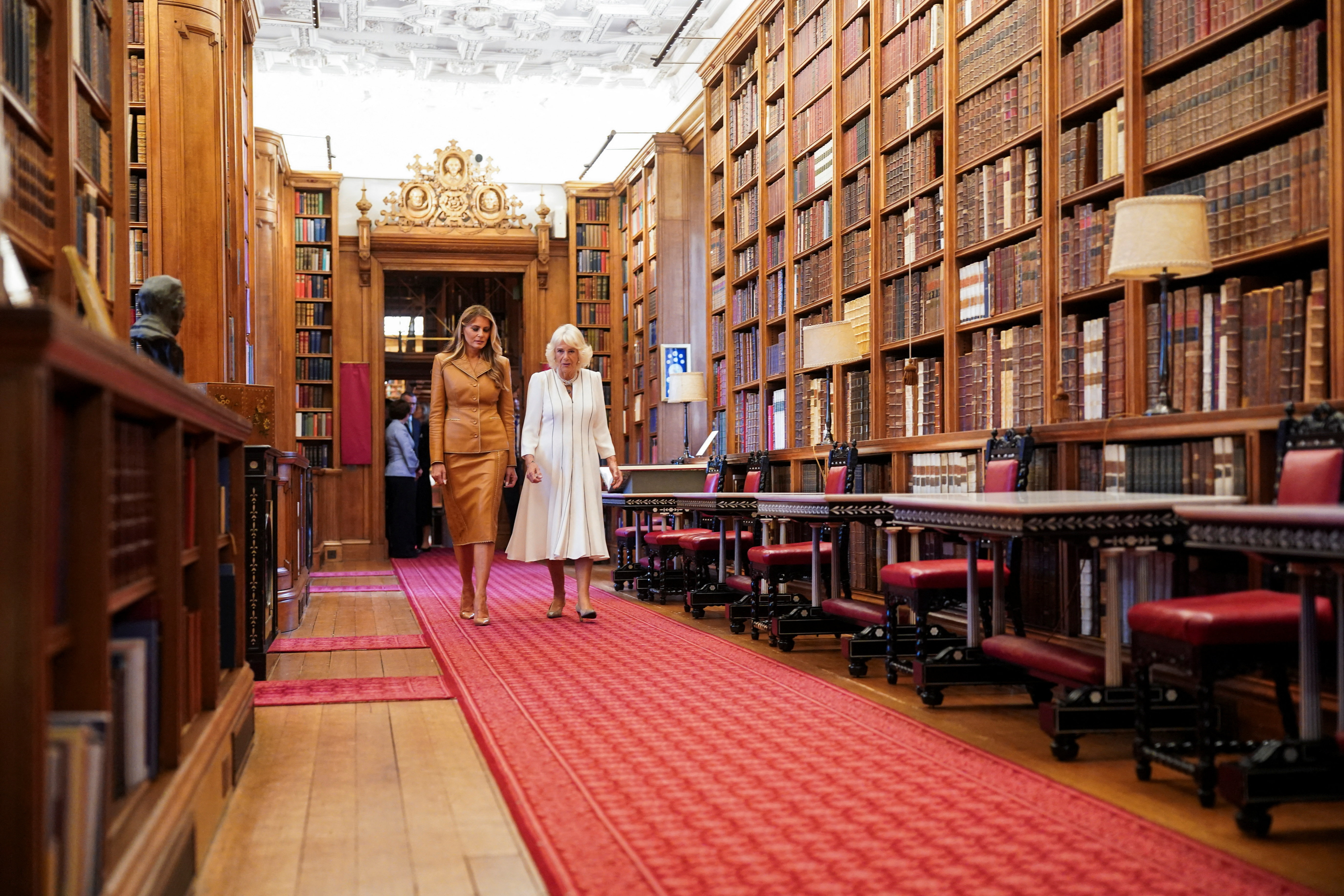 Prva dama ZDA si je v spremstvu britanske kraljice Camille v gradu Windsor najprej ogledala kraljevo knjižnico, nato pa tudi miniaturno palačo kraljice Marije, z deli več kot 1.500 umetnikov, obrtnikov in proizvajalcev iz začetka 20. stoletja. Zgradili so jo med letoma 1921 in 1924 po načrtih vodilnega britanskega arhitekta Edwina Lutyensa.