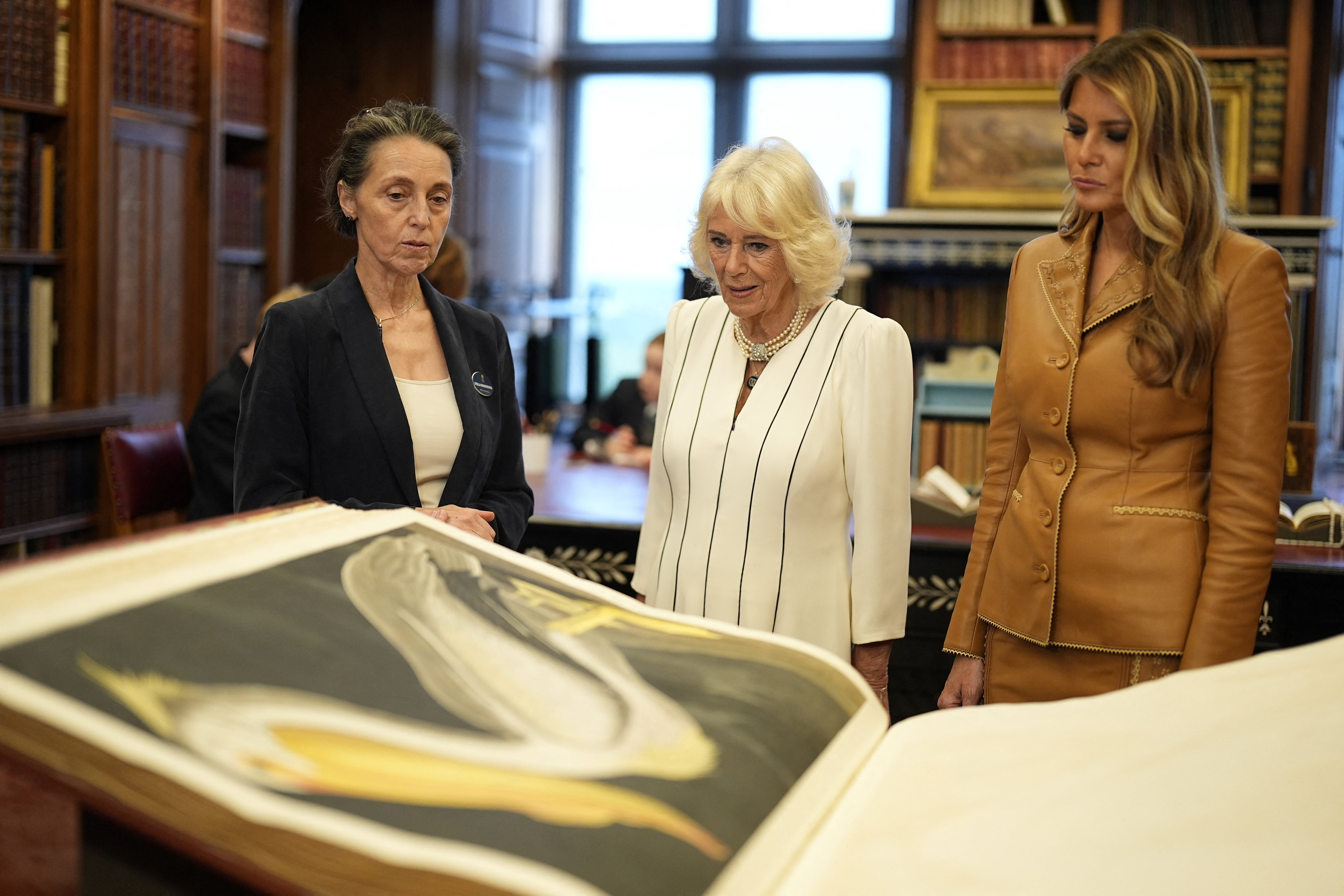Prva dama ZDA Melania Trump je državniški obisk Velike Britanije zaključila v družbi britanske kraljice Camille in princese Kate. S soprogo kraljico sta si ogledali kraljevo knjižnico, s princeso Kate pa sta se na kraljevem posestvu družili s skavti.