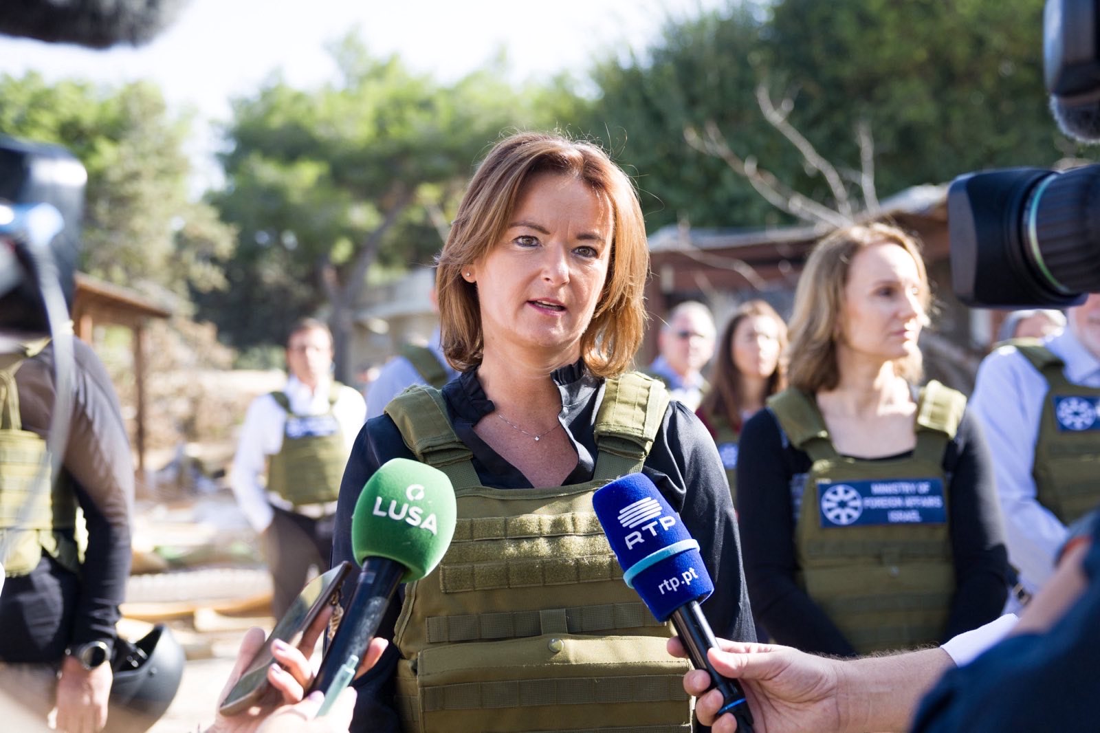 "Stojimo ob Izraelu v boju proti terorizmu in ekstremizmu. Obisk v kibucu je bil pretresljiv. Razumem strah in jezo ter odločno obsojam nasilje in vse oblike ekstremizma. Toda biti priča številu smrtnih žrtev med Palestinci, na tisoče otrok in žensk v Gazi, je grozljivo," je na novinarski konferenci s portugalskim kolegom Joaom Gomesom Cravinhom in izraelskim kolegom Elijem Koenom dejala ministrica Tanja Fajon.