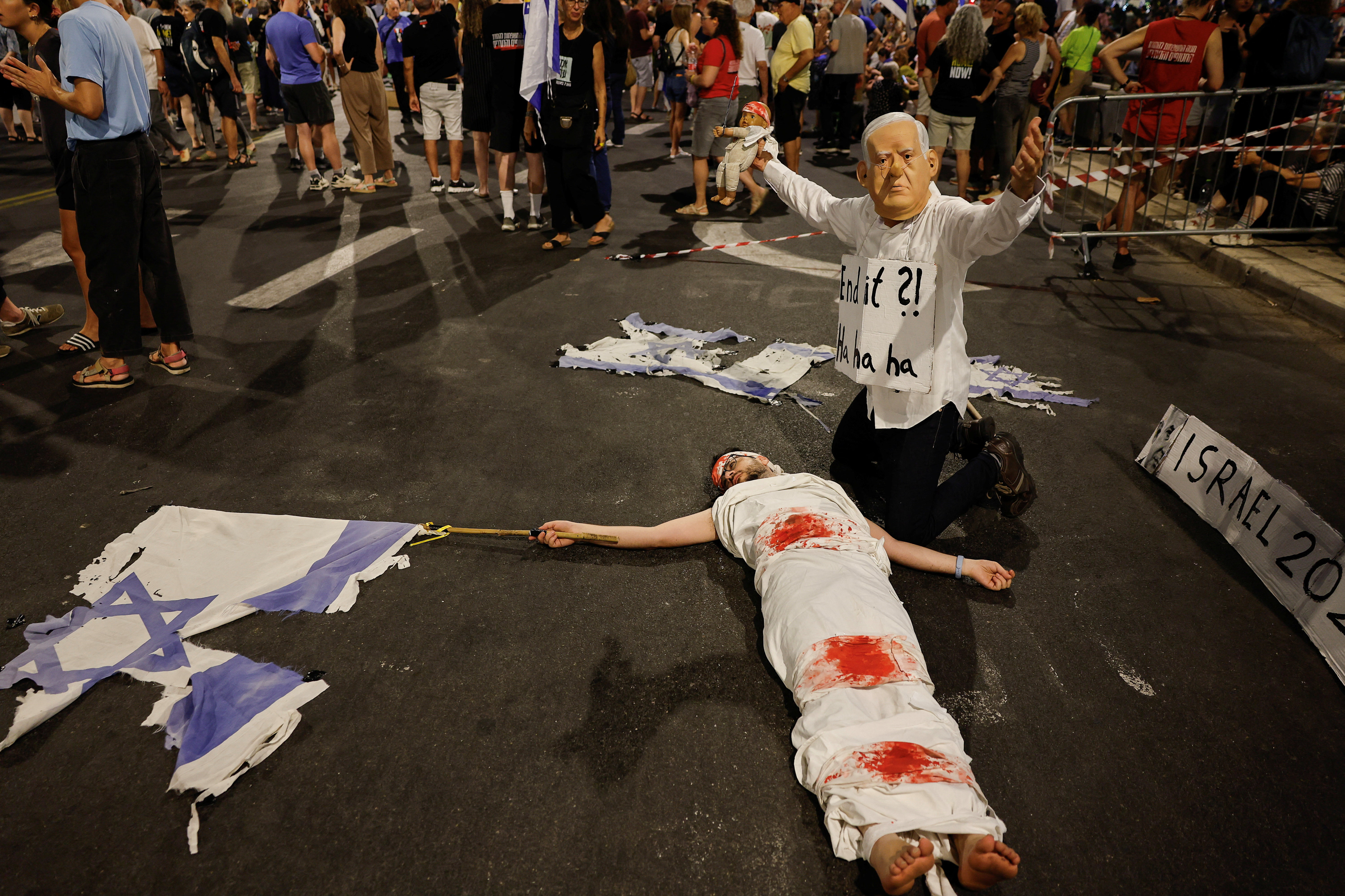 Po navedbah združenja za družine talcev in pogrešanih se je na ulicah Tel Aviva v soboto zbralo okoli 60.000 ljudi. Protesti so po poročanju časnika Times of Israel potekali tudi v nekaterih drugih izraelskih mestih. Časnik navaja, da so bile to ene najbolj množičnih demonstracij v zadnjih tednih.