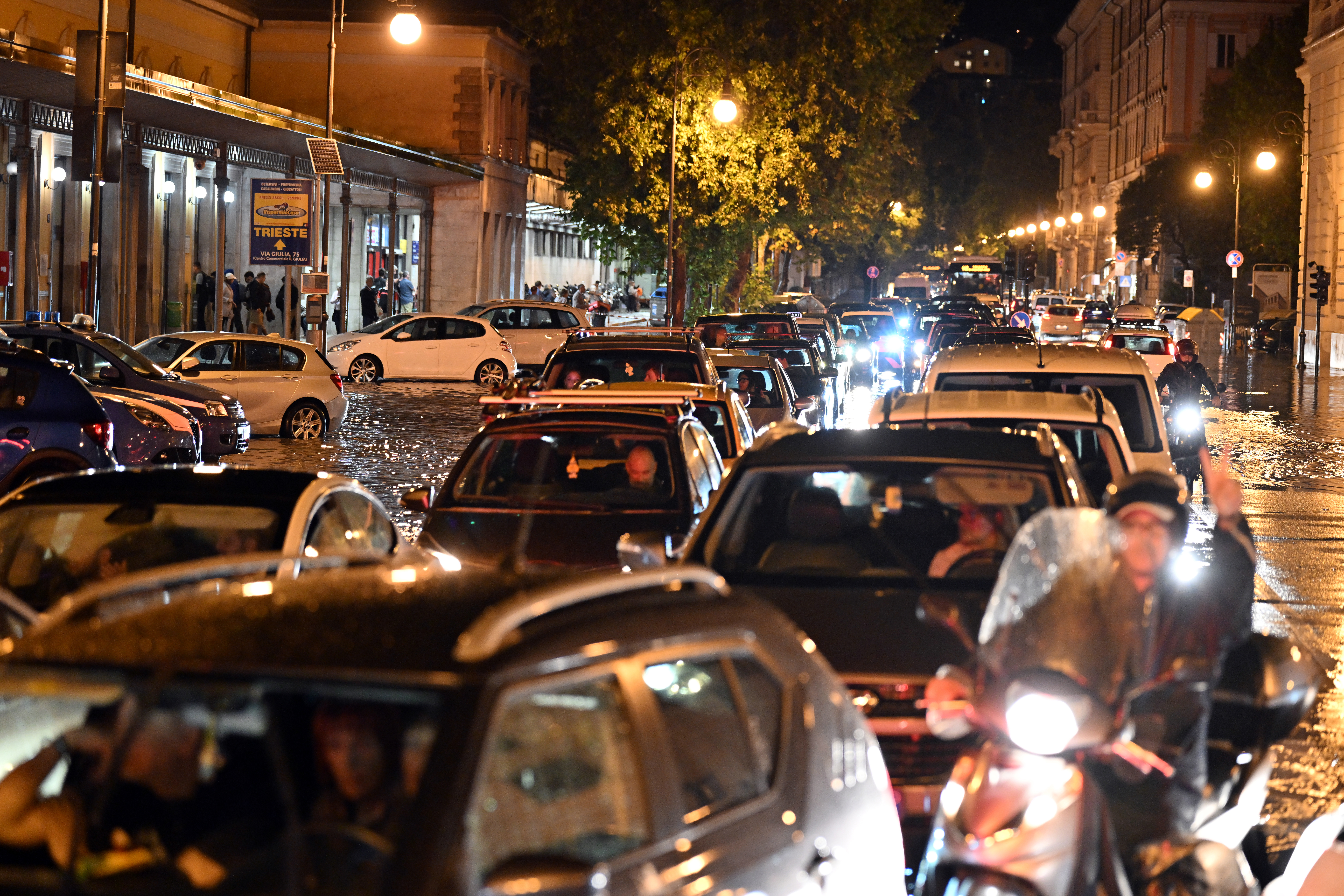 V Trstu je sinoči meteorna voda poplavljala pločnike in ceste ter trgovine in lokale. V približno tridesetih minutah je padlo toliko dežja, kolikor običajno skupaj zabeležijo v tretjini septembra.
