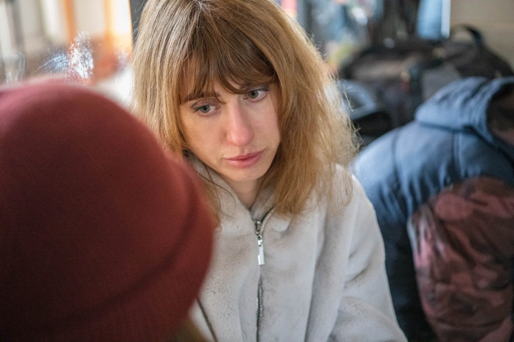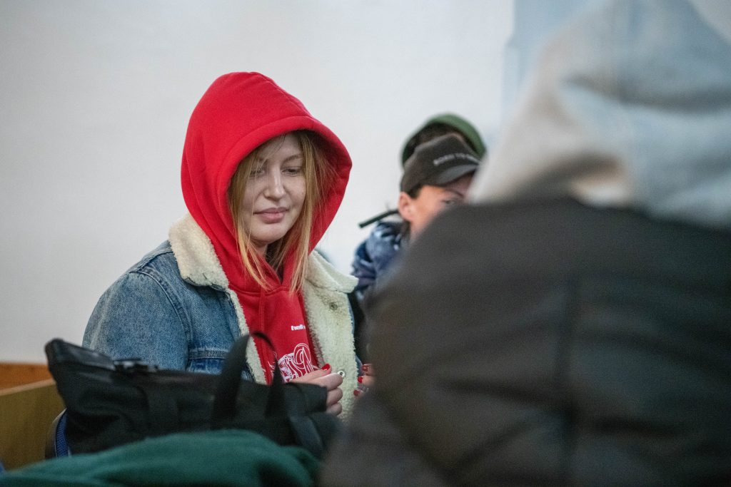 Anastasija, stara 27 let, je skupaj z mamo in sestro v Beregsúrany pripotovala iz Lvova. Po prečkanju meje smo jih srečali v zavetišču, ki ga vodi Rdeči križ in kjer lahko begunci, če to potrebujejo, tudi prespijo. Skrivala se je pod kapuco, obkrožena s torbami, da je bilo pot do nje izjemno težko najti. Z mamo in sestro je namenjena v Split, kjer je njen oče. Anastazija v Splitu še ni bila, a je slišala, da je lepo. Vseeno, je odločna, "to niso počitnice". Begunka je.