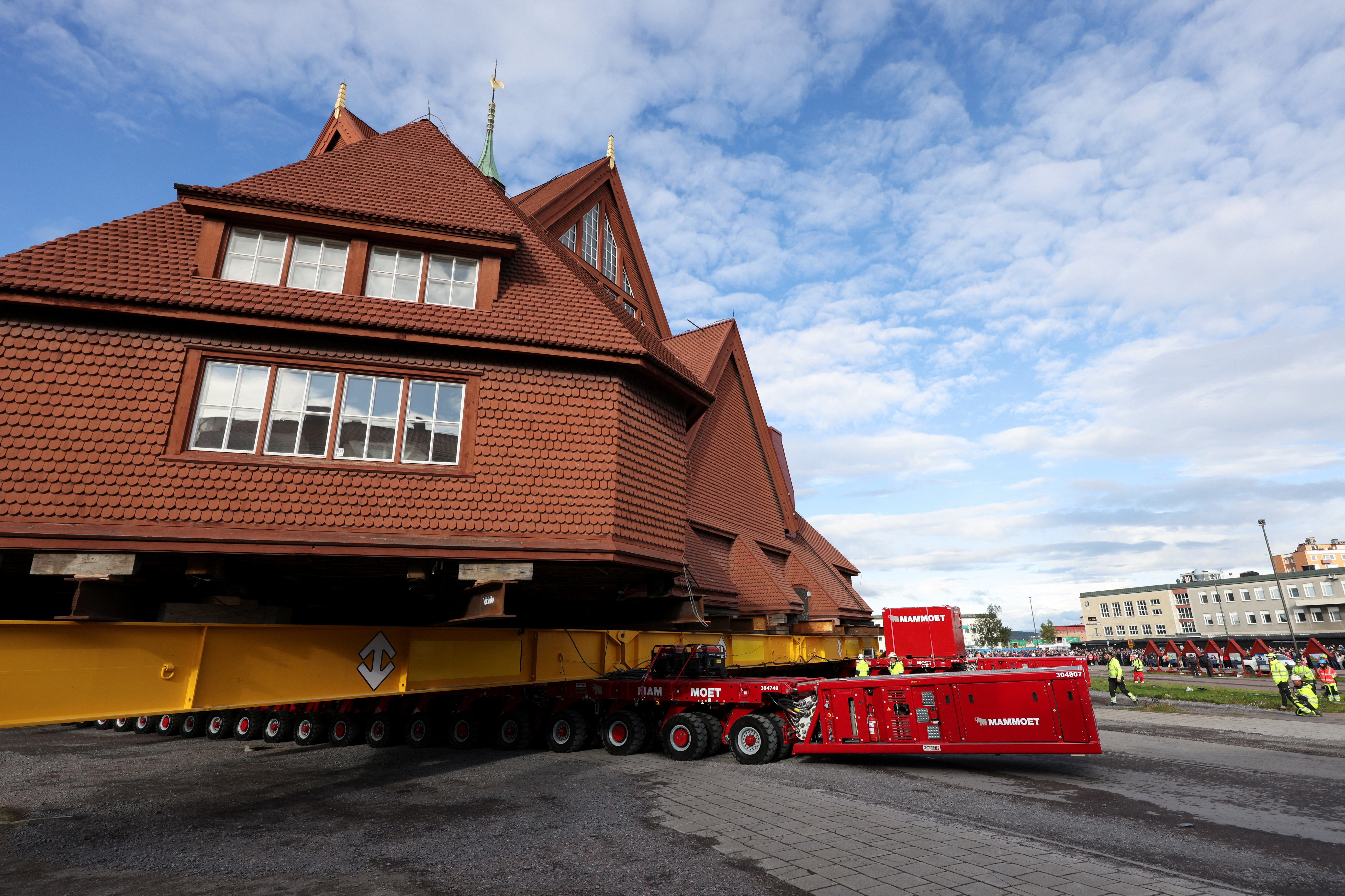 So this is happening right now here in Kiruna, Sweden. We're moving the massive wooden church. 0,5km/h to its new home in our new town. History being made on a Tuesday. pic.twitter.com/8zBAXmhv55