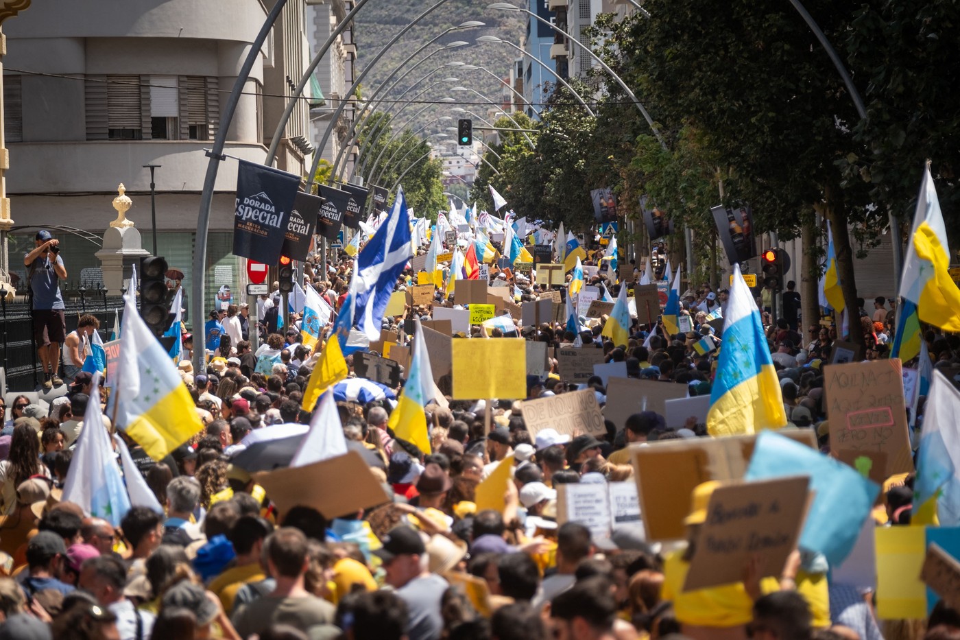 VečPo podatkih oblasti je na otoku Tenerife, največjem v arhipelagu, protestiralo 7.000 ljudi. Na Gran Canarii se je zbralo 3.000 protestnikov, na otoku Lanzarote 1.500 in na Fuerteventuri tisoč.