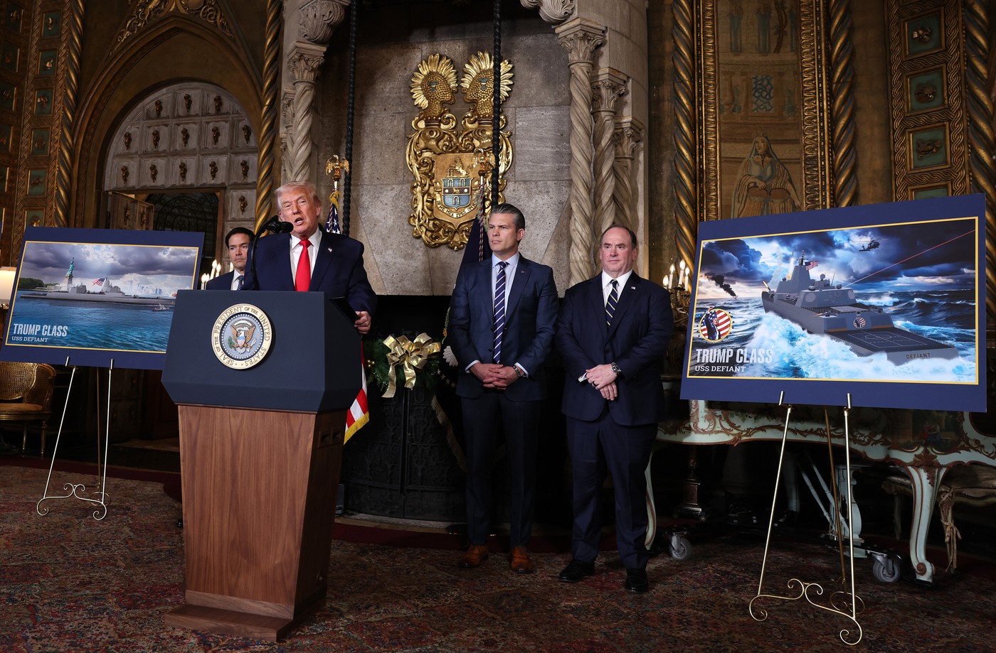 "To bodo najhitrejše, največje in daleč najmočnejše od vseh bojnih ladij, ki so bile kdaj zgrajene," je Trump v ponedeljek zagotovil v svojem letovišču Mar a Lago na Floridi v spremstvu državnega sekretarja Marca Rubia, ministra za obrambo Peta Hegsetha in sekretarja mornarice Johna Phelana.
