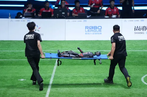 Posnetki tekem namreč prikazujejo, kako roboti s težavo brcajo žogo, pogosto pa končajo na tleh v nerodnih padcih, za katere bi človeški igralci morda celo dobili rumeni karton za simuliranje. Dva robota so morali celo na nosilih odnesti z igrišča.