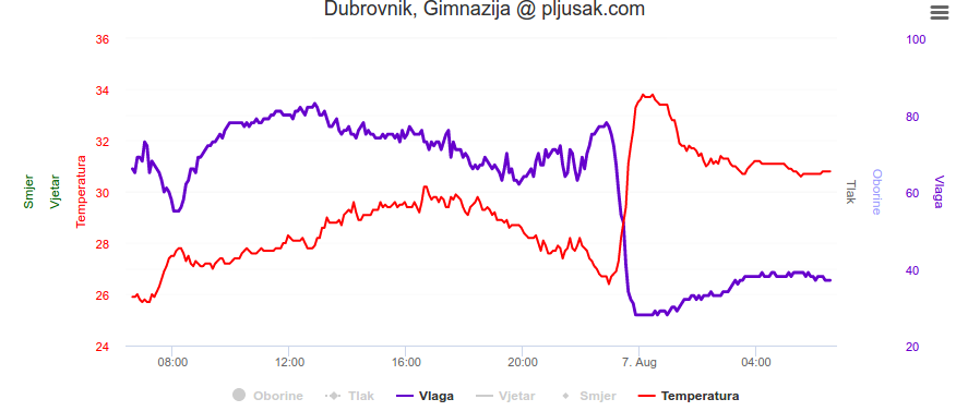 Obenem je zračna vlaga padla za petdeset odstotkov, poročajo hrvaški mediji, to pa kaže tudi spodnji graf.