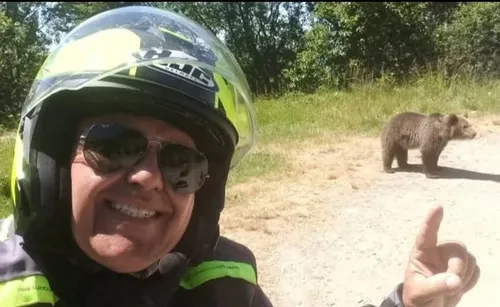 Romania, Carpathian Mountains: A motorcyclist wearing a helmet and full protective gear, was dragged down a ravine and mauled to death by a bear. The careless man stopped to take a selfie with the apex predator.