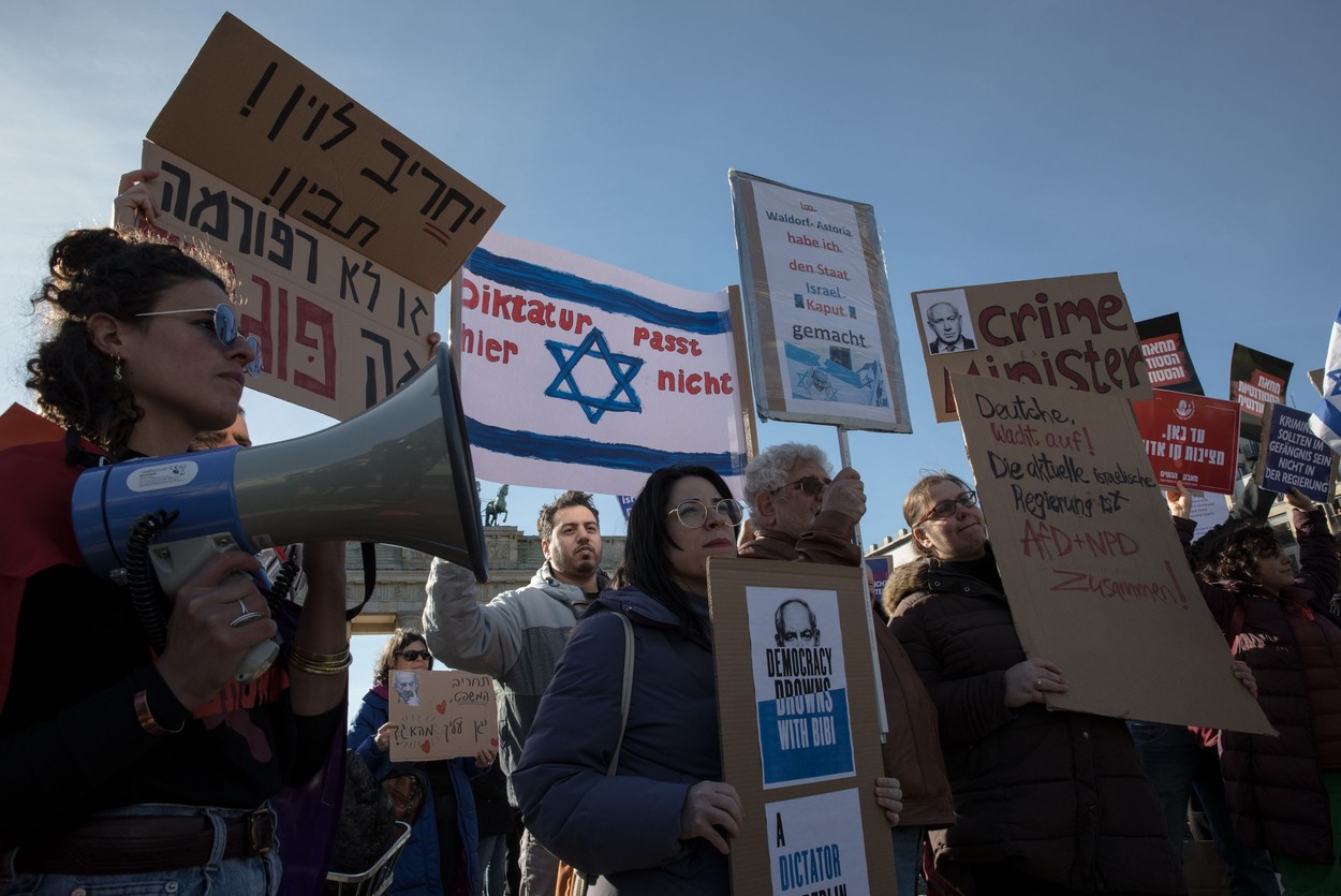 V času pogovorov med voditeljema je pred Brandenburškimi vrati med 400 in 500 protestnikov izražalo nasprotovanje Netanjahujevi vladavini. Izraelski premier se je za tem srečal še z nemškim predsednikom Frank-Walterjem Steinmeierjem.