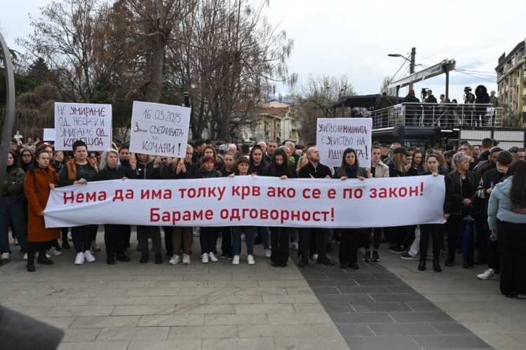 Potem ko je Severno Makedonijo v nedeljo pretresel smrtonosni požar v klubu v Kočanih, so se danes pred tamkajšnjo mestno hišo zbrali protestniki, ki so zahtevali odgovore in terjali odgovornost za tragedijo.
