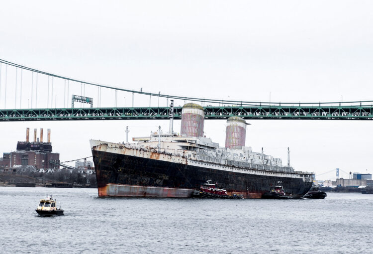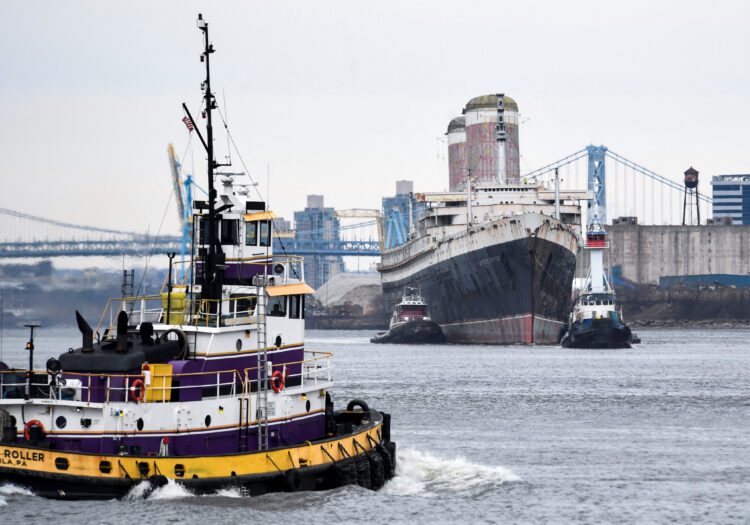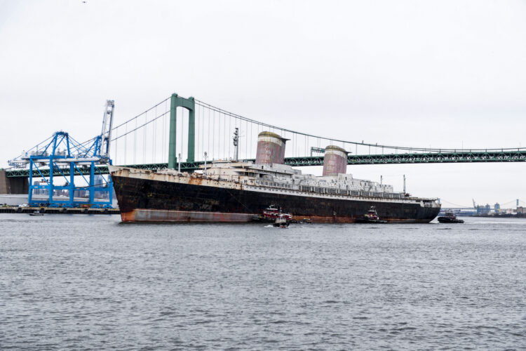Z obrežja reke Delaware na jugu Filadelfije so odvlekli čezoceansko ladjo SS United States, ki jo nameravajo spremeniti v največji umetni greben na svetu.