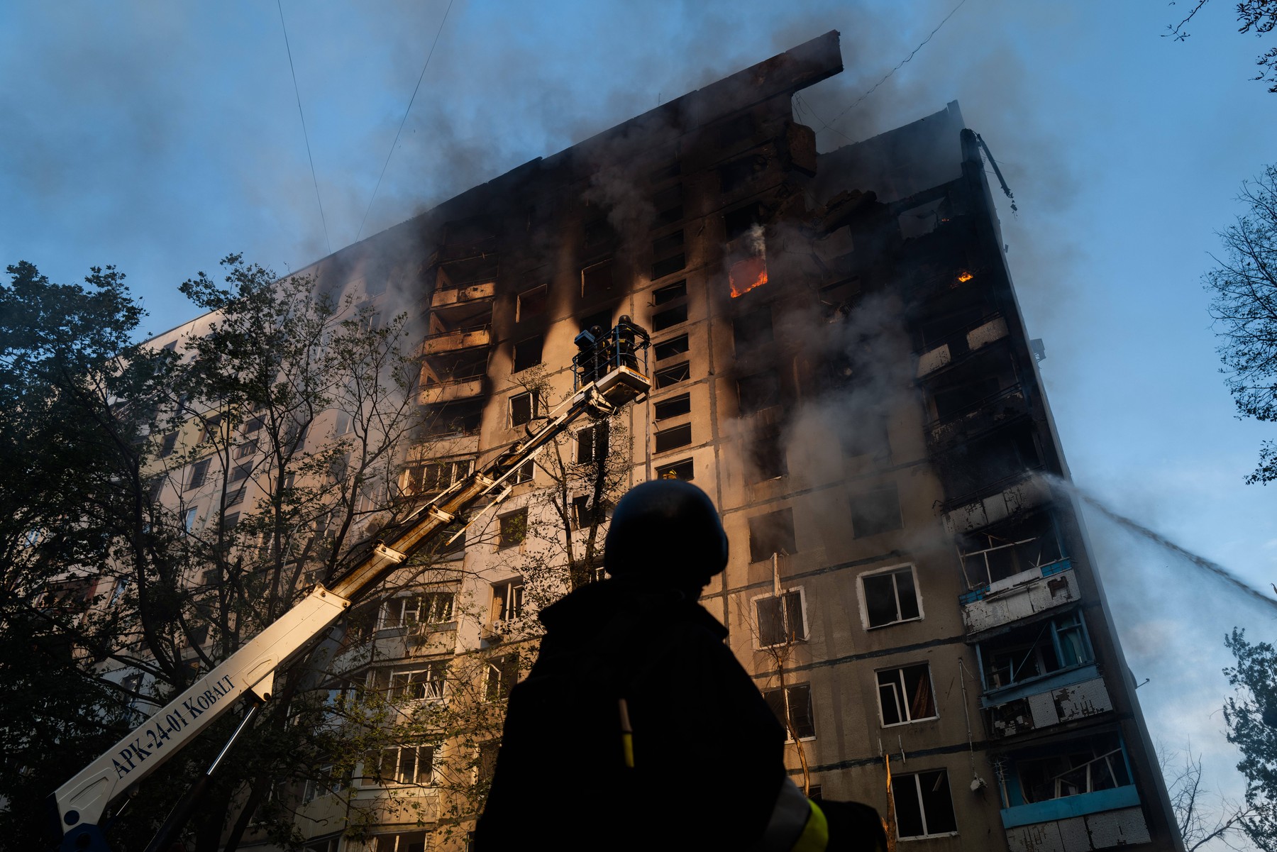 Ruska vodena bomba je zadela stanovanjsko stavbo v središču mesta. Po besedah guvernerja harkovske regije Olega Sinegubova je bil v napadu ubit 11-letni otrok in še najmanj ena oseba, 34 ljudi pa je bilo ranjenih. Pod ruševinami je morda ujetih še več ljudi.