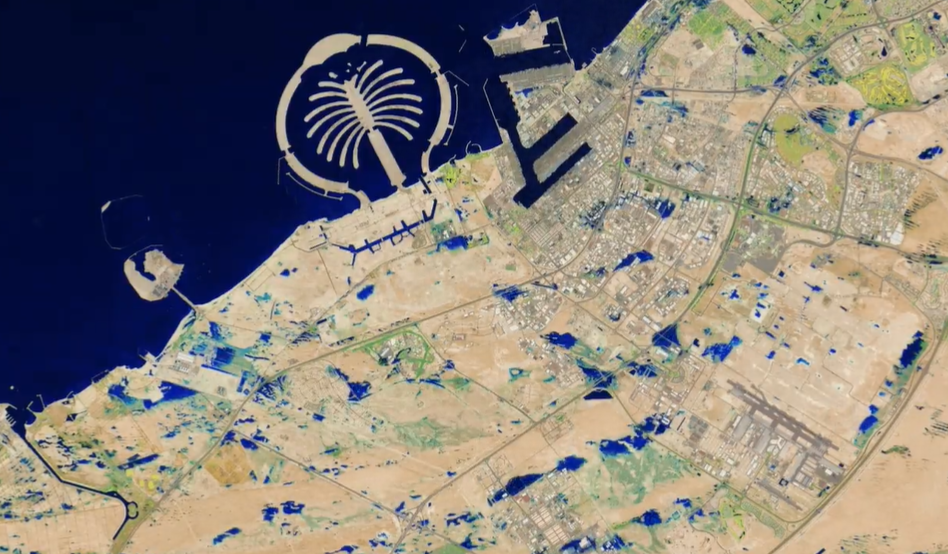 Dubaj in okoliške puščavske kraje so minuli teden prizadele obsežne poplave, potem ko je v torek v delih Arabskega polotoka v zgolj enem dnevu padla takšna količina padavin, kot sicer v povprečju pade v obdobju skoraj dveh let. Ujma je ohromila promet, tudi letalski, na družbenem omrežju X pa je poznavalec ekstremnih vremenskih dogodkov objavil satelitski posnetek, ki prikazuje številne novonastale "ribnike" na območju mesta v Združenih arabskih emiratih.