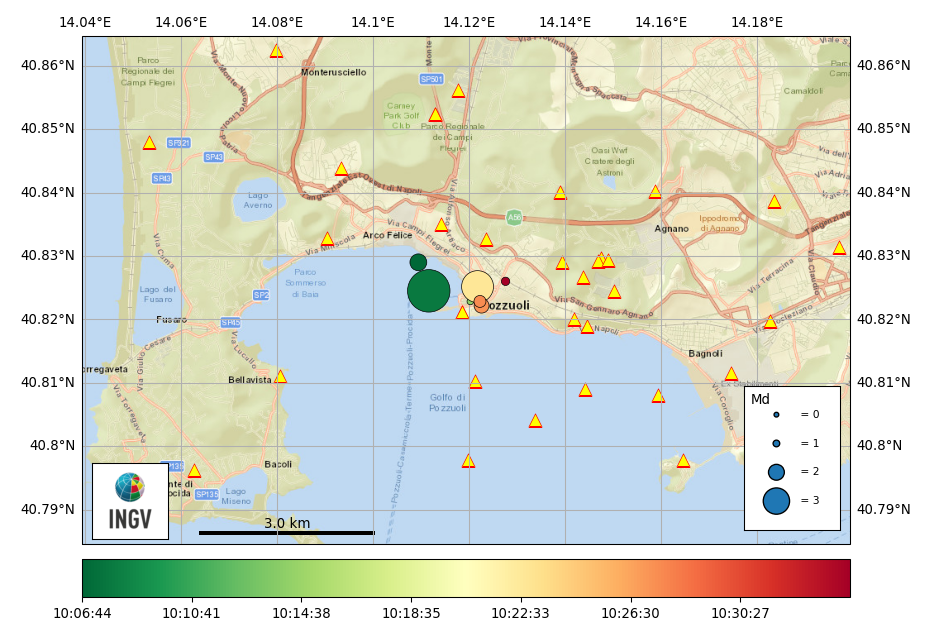 "V zadnjih nekaj letih je bilo na tem območju zabeleženo povečano število majhnih in zmernih potresov," pravita in pojasnjujeta, da je bilo po podatkih Italijanskega nacionalnega inštituta za geofiziko in vulkanologijo (INGV) v mesecu aprilu 2024 zabeleženih 1.252 potresov z največjo magnitudo 3,9.