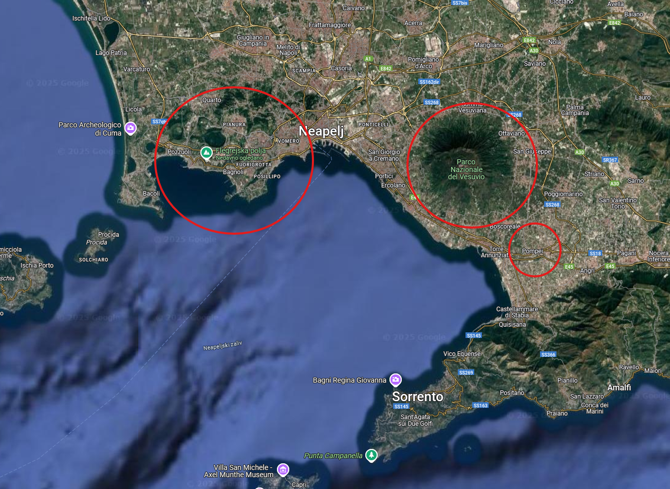 Birko in Rajh sta pojasnila, da ime Flegrejska polja (ital. Campi Flegrei) prihaja iz grščine in v dobesednem prevodu pomeni "goreča polja". To veliko ognjeniško območje je aktivno že več kot 80.000 let, po njunih besedah pa zato tudi ogroža bližnja gosto naseljena mesta.