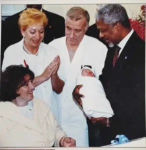 Po več kot desetih urah poroda je malo čez polnoč 12. oktobra 1999 v sarajevski bolnišnici Koševo na svet prijokal Adnan Mević in tako postal šestmilijardti prebivalec sveta. Takoj po rojstvu so ga položili v roke takrat generalnemu sekretarju Združenih narodov Kofiju Annanu in tako je nastala slavna fotografija, ki je zakrožila po svetu.