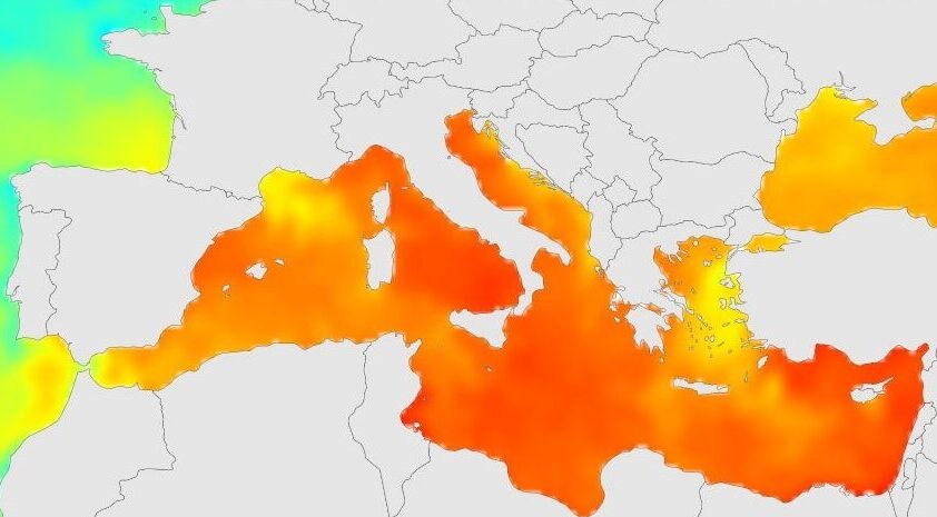 V nedeljo so po meritvah Sredozemskega centra za okoljske študije (CEAM) na njegovi gladini izmerili rekordno visoko povprečno temperaturo 28,16 stopinje Celzija. 18 od 20 najvišjih dnevnih izmerjenih temperatur za Sredozemsko morje so zabeležili zgolj v zadnjih 13 mesecih – ki so vsak mesec podirali tudi rekorde povprečne temperature ozračja.