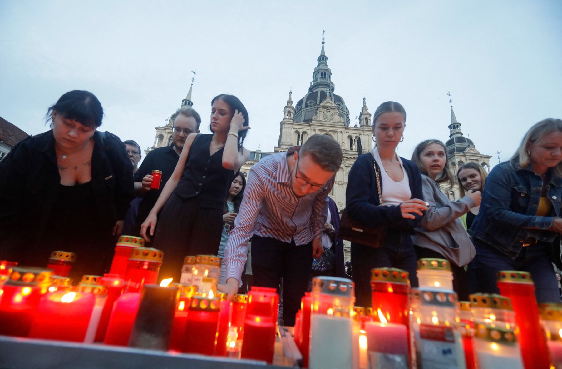 Zvečer se je na glavnem trgu v Gradcu zbrala množica ljudi, ki se je poklonila žrtvam in svojcem. Zagorele so številne sveče, tudi pred srednjo šolo, kjer se je zgodil strelski napad.