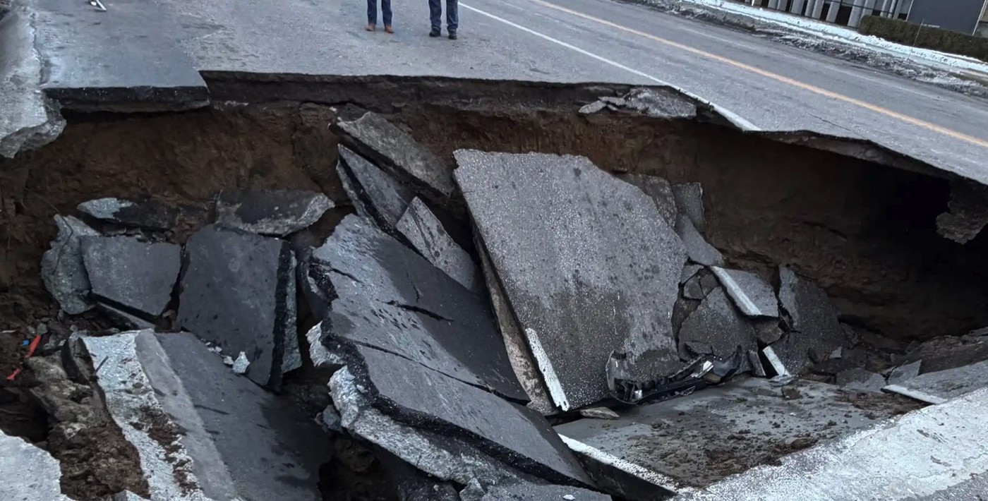 Ameriška voznika, ki sta čakala pri rdeči luči na semaforju, sta padla v več metrov globoko luknjo, potem ko je asfalt pod njima nenadoma popustil.
