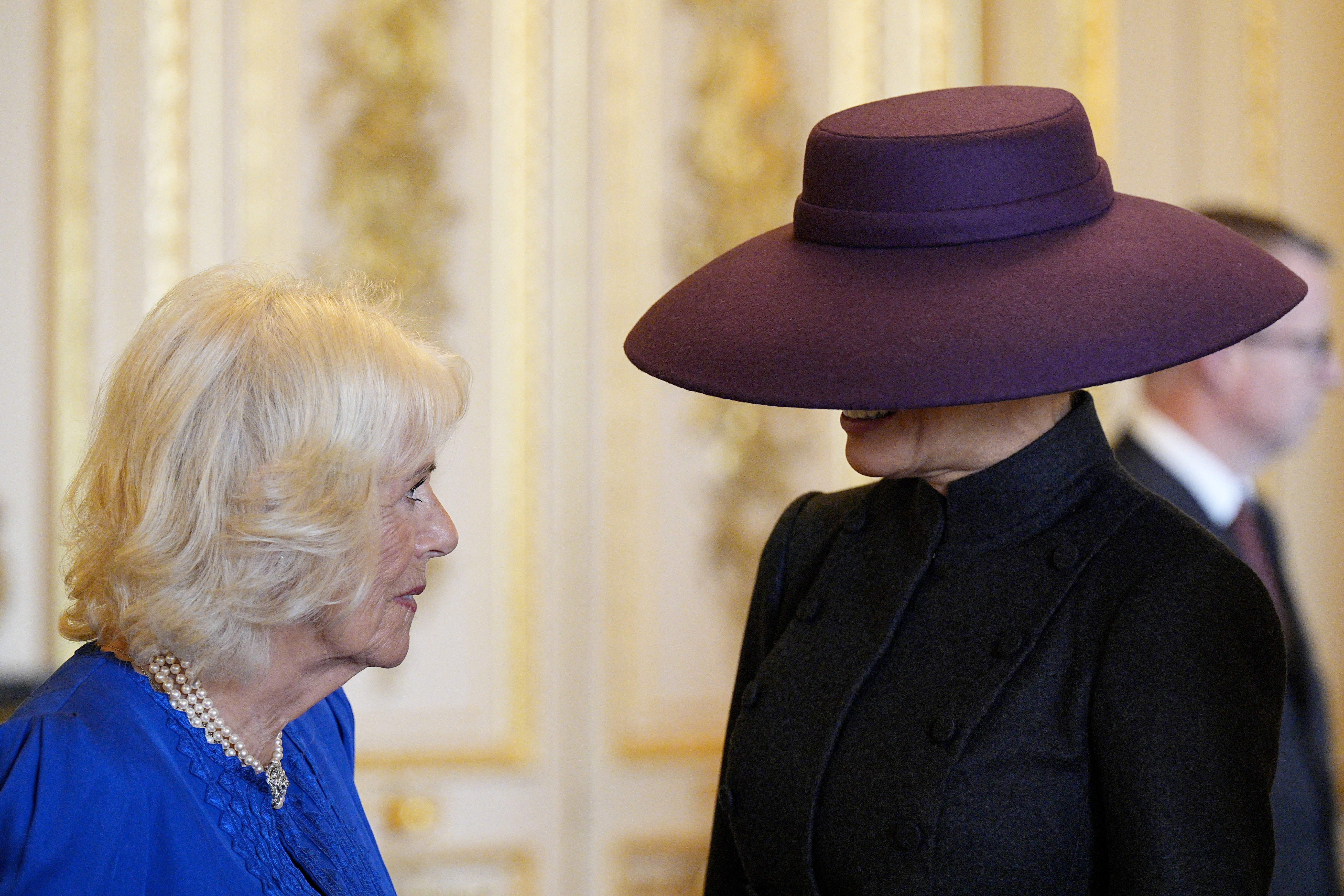 Prva dama slovenskih korenin Melania je medtem kraljici Camilli poklonila broško znamke Tiffany, z rubini – njenim rojstnim kamnom – in diamanti, rojstnimi kamni Melanie Trump.