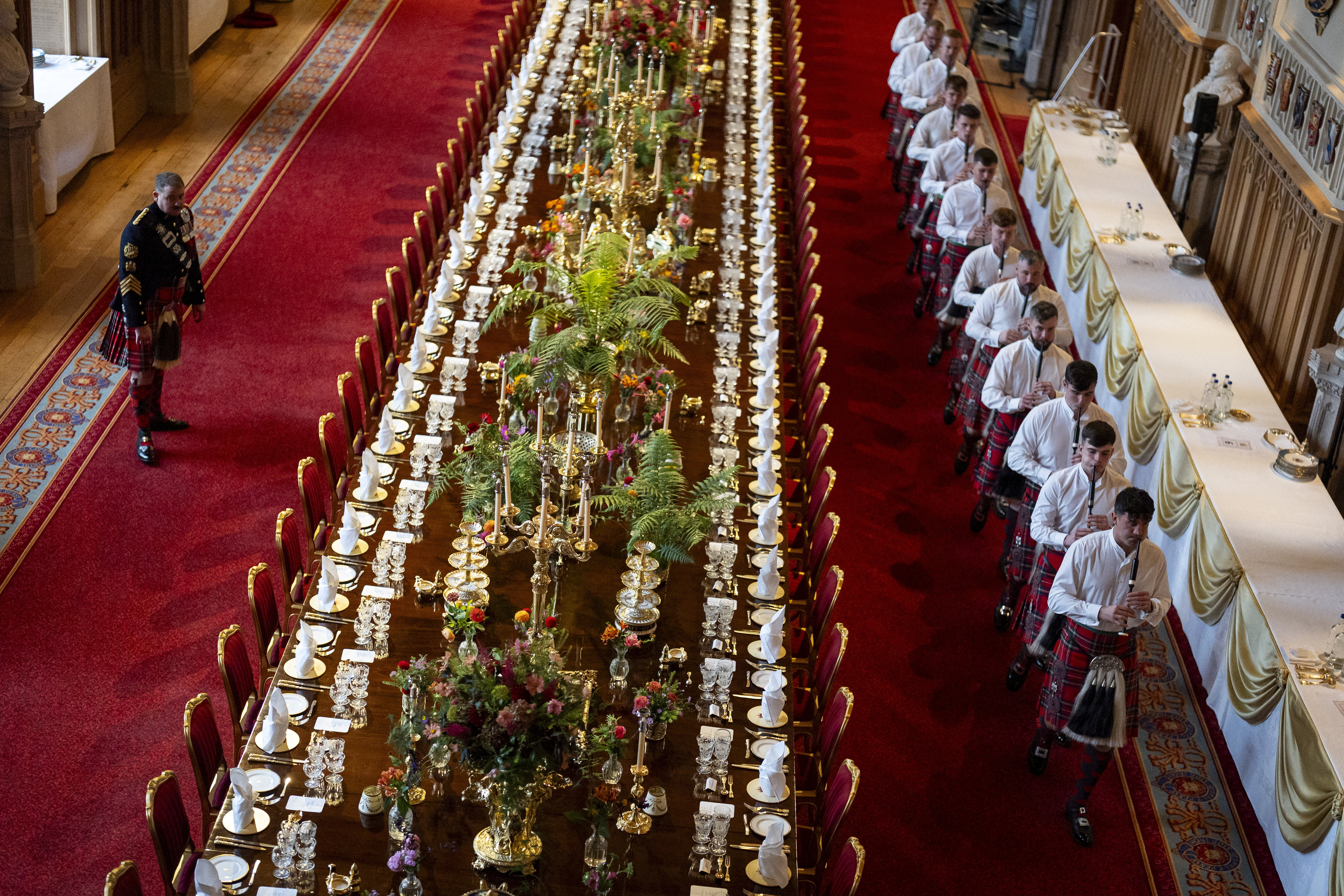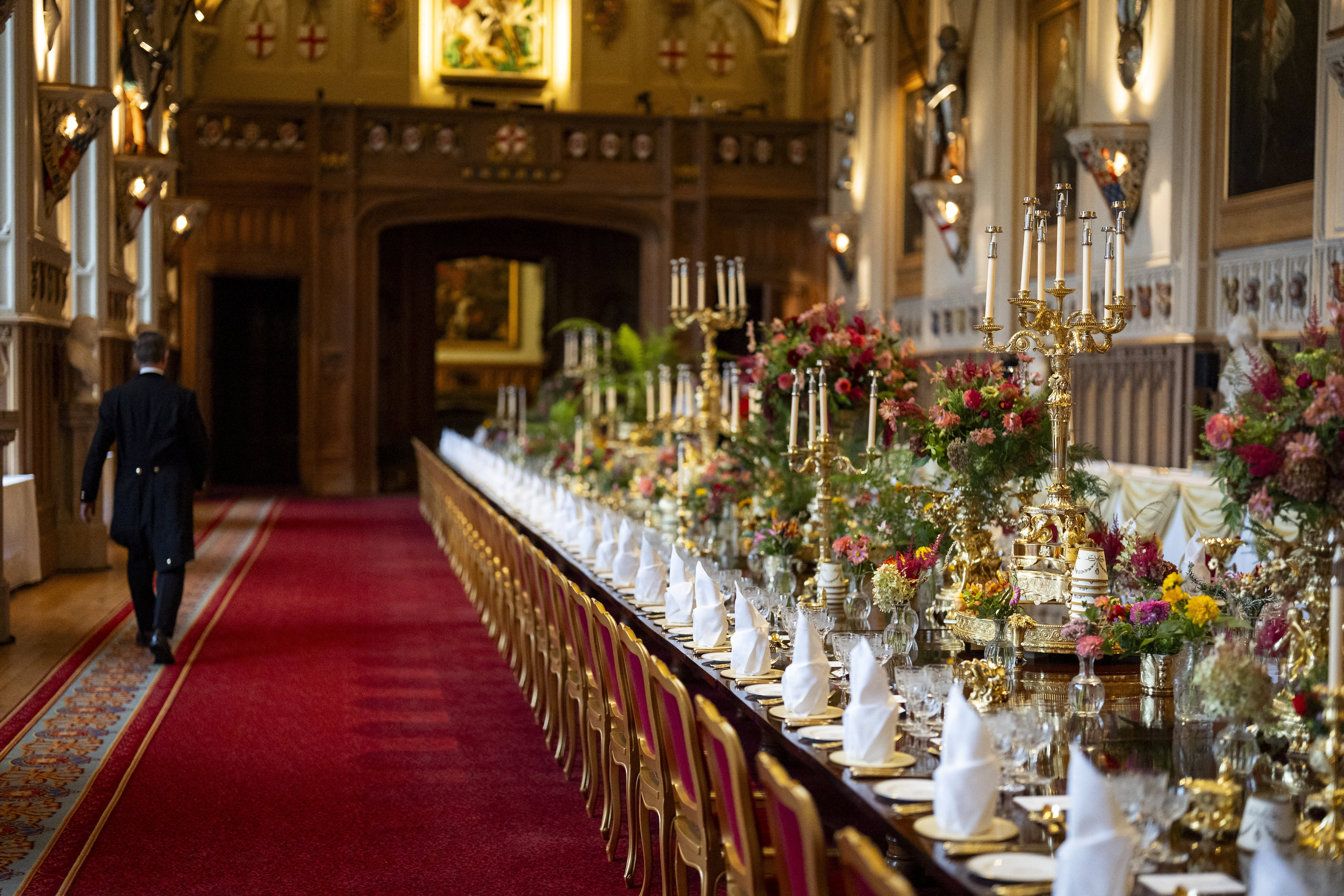 Banket predstavlja sklepno dejanje prvega dne Trumpovega obiska. Britanski kraljevi par je zakonca Trump sprejel na posestvu ob gradu Windsor, kamor sta prispela s helikopterjem. Ob prihodu sta ju pozdravila tudi William in Kate.