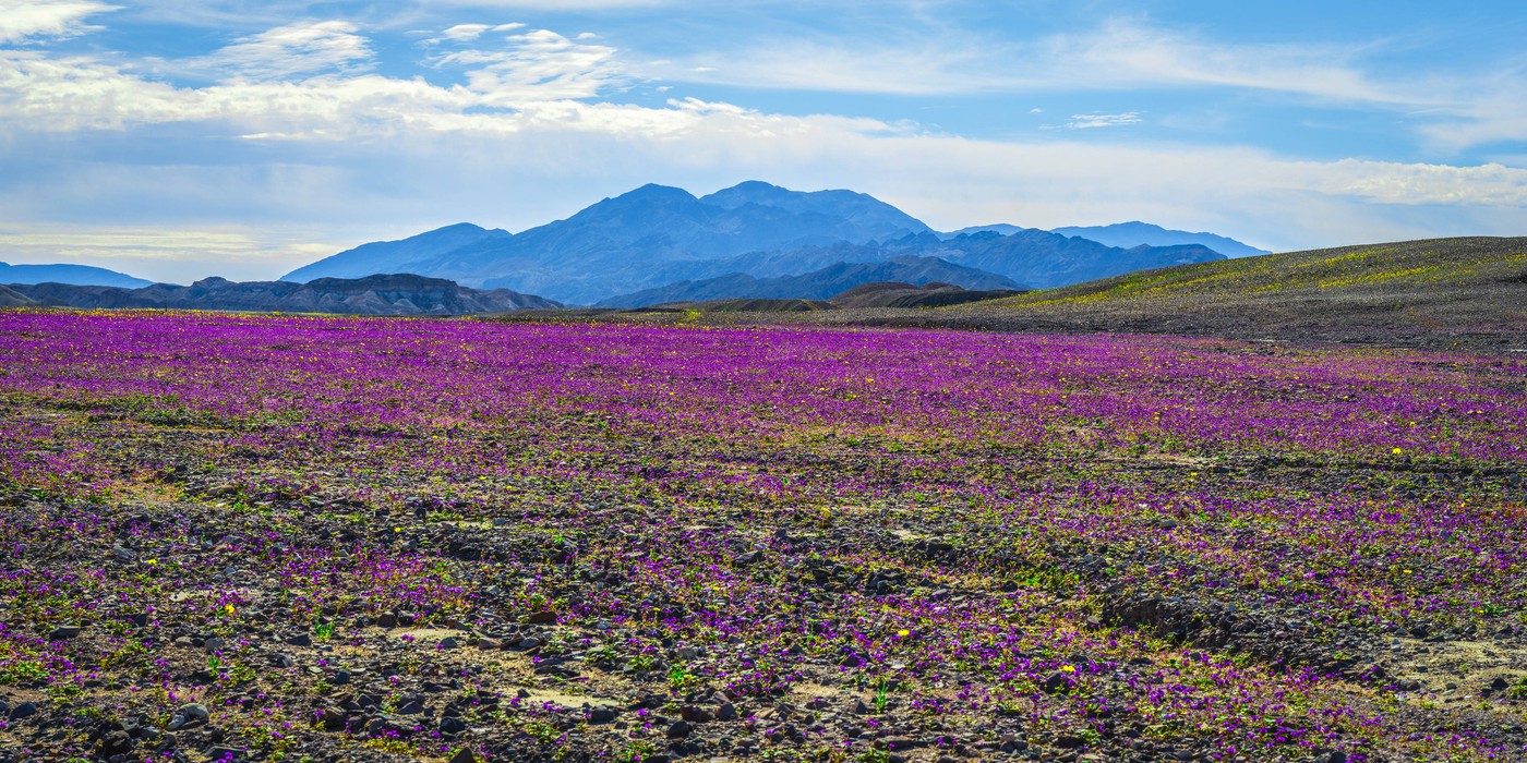 Izjemno cvetenje divjih rož je Dolino smrti v ameriški zvezni državi Kalifornija, eno najbolj vročih in najbolj suhih puščav na svetu, te dni obarvalo v rožnato, vijoličasto in rumeno barvo, poročajo ameriški mediji.