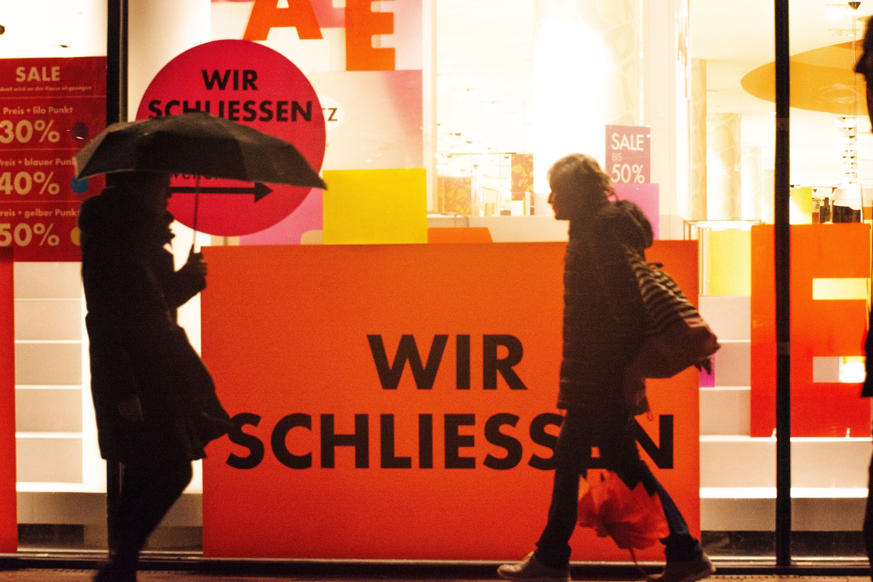Na vhodnih vratih vse več trgovin v Nemčiji je mogoče opaziti napis "zapiramo". V številnih mestih se zapirajo poslovalnice priljubljenih verig C&A, Galerie Karstadt Kaufhof, Primark, Görtz, H&M, Orsay, Conrad in Media Markt.