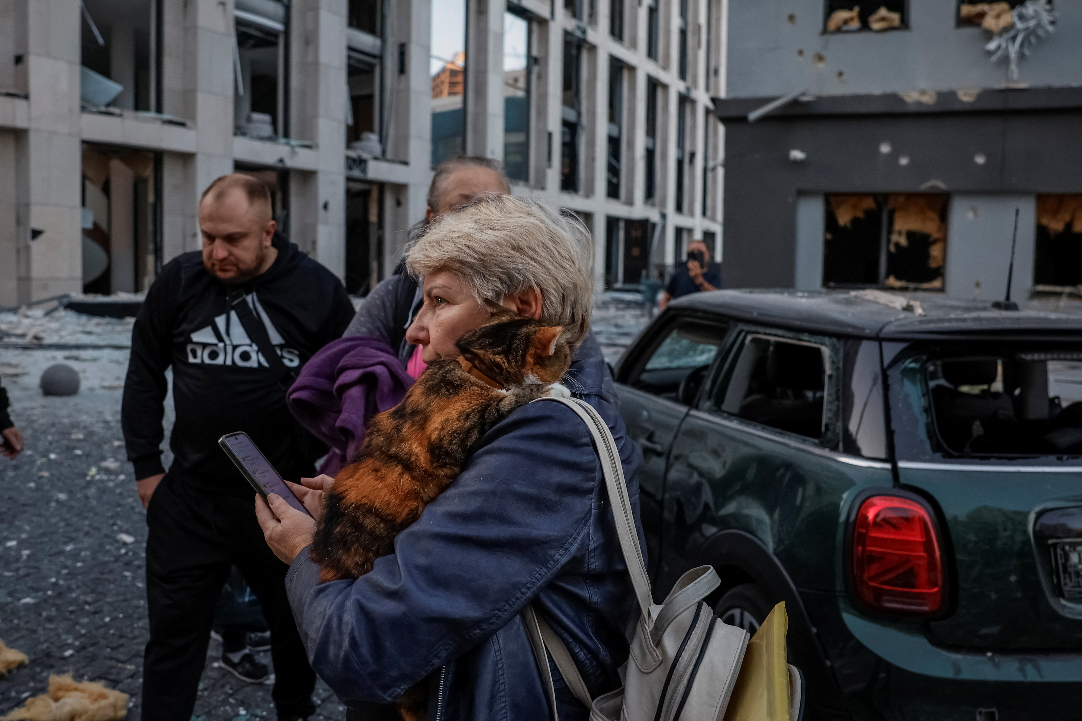V današnjem ruskem napadu na Kijev je bilo po zadnjih podatkih ubitih 18 ljudi, med njimi štirje otroci, ranjenih je okoli 50 ljudi. Poškodovanih je bilo več stavb, vključno s prostori delegacije EU v Ukrajini. Ukrajinski predsednik Volodimir Zelenski je obsodil napad in pozval k pritisku na Rusijo. Napad so ostro obsodili tudi v Bruslju.