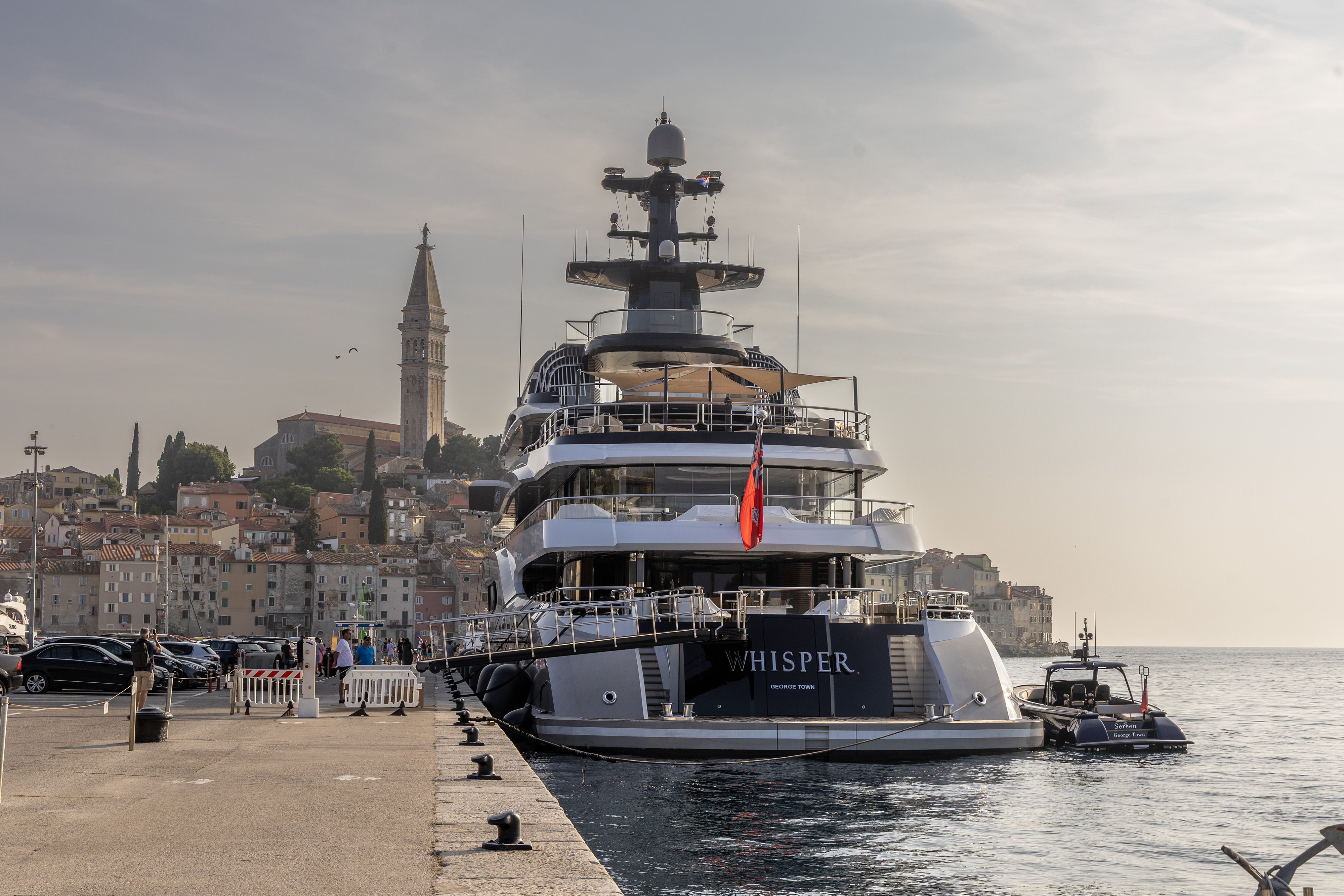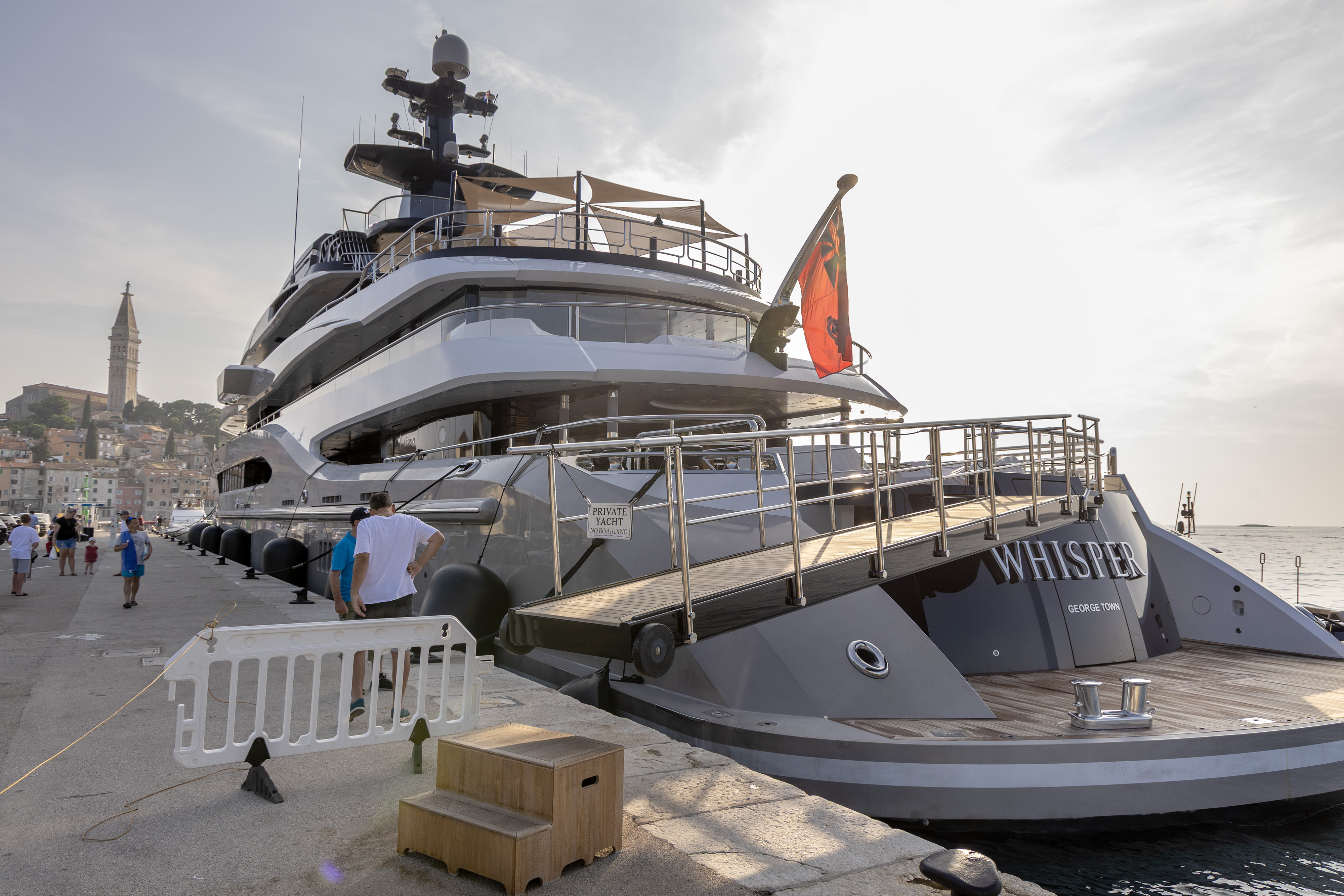 V Rovinj je priplula superjahta Whisper, ena najbolj impresivnih luksuznih jaht na svetu. Gre za 95 metrov dolgo plovilo, zgrajeno leta 2014, ki te dni poglede privablja na Jadranu. Tedenski najem stane vrtoglavih 1,2 milijona evrov.